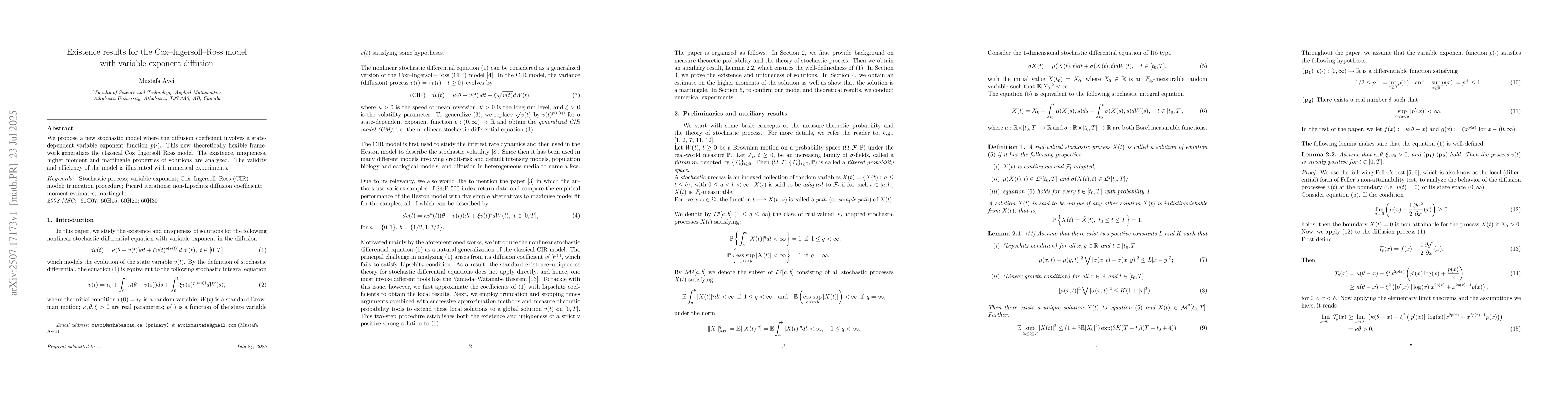 We propose a new stochastic model where the diffusion coefficient involves a state-dependent variable exponent function $p(\cdot)$. This new theoretically flexible framework generalizes the classical Cox-Ingersoll-Ross model. The existence, uniqueness, higher moment and martingale properties of solutions are analyzed. The validity and efficiency of the model is illustrated with numerical experiments.