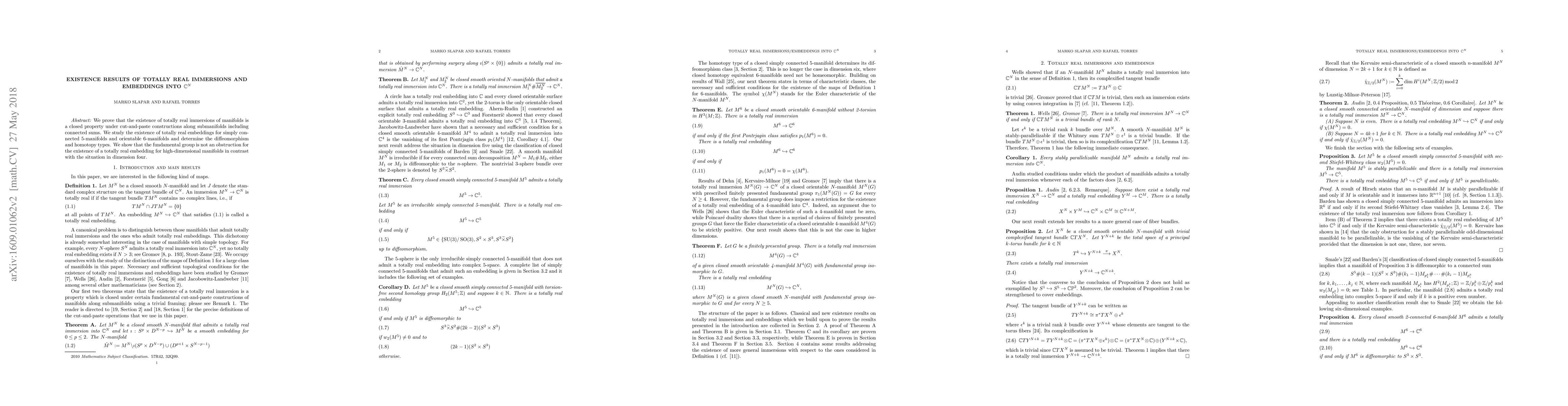 Summary: This paper demonstrates that totally real immersions of manifolds are preserved under cut-and-paste operations, including connected sums. It also investigates the existence of totally real embeddings for specific 5- and 6-manifolds, revealing that the fundamental group does not hinder such embeddings in higher dimensions.