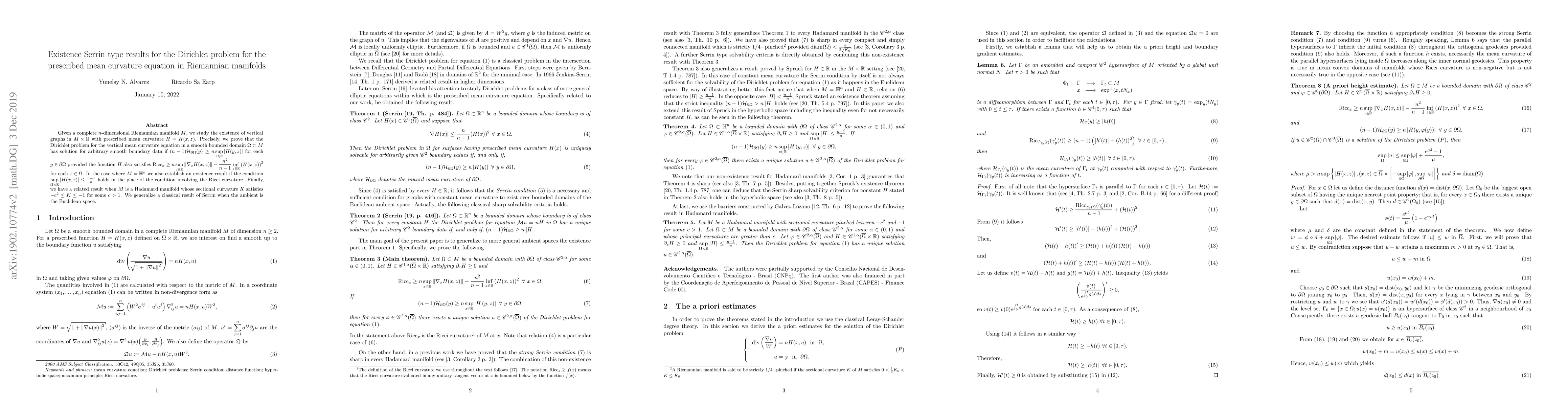 Researchers proved that a Dirichlet problem for prescribed mean curvature equation in Riemannian manifolds has solutions under certain conditions, generalizing Serrin's classic result to non-Euclidean spaces.