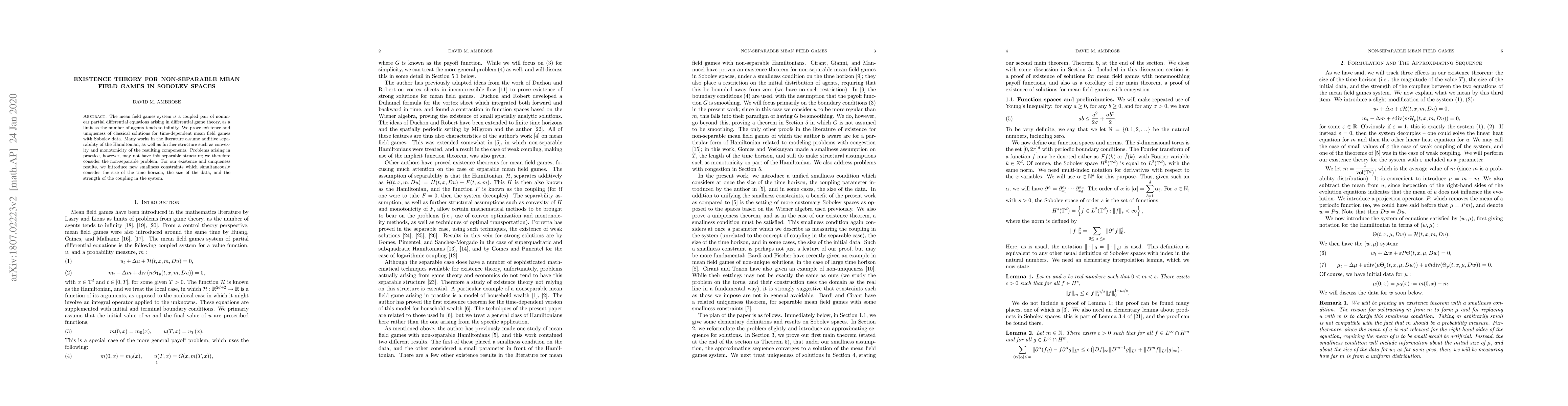 The mean field games system is a coupled pair of nonlinear partial differential equations arising in differential game theory, as a limit as the number of agents tends to infinity. We prove existence and uniqueness of classical solutions for time-dependent mean field games with Sobolev data. Many works in the literature assume additive separability of the Hamiltonian, as well as further structure such as convexity and monotonicity of the resulting components. Problems arising in practice, however, may not have this separable structure; we therefore consider the non-separable problem. For our existence and uniqueness results, we introduce new smallness constraints which simultaneously consider the size of the time horizon, the size of the data, and the strength of the coupling in the system.