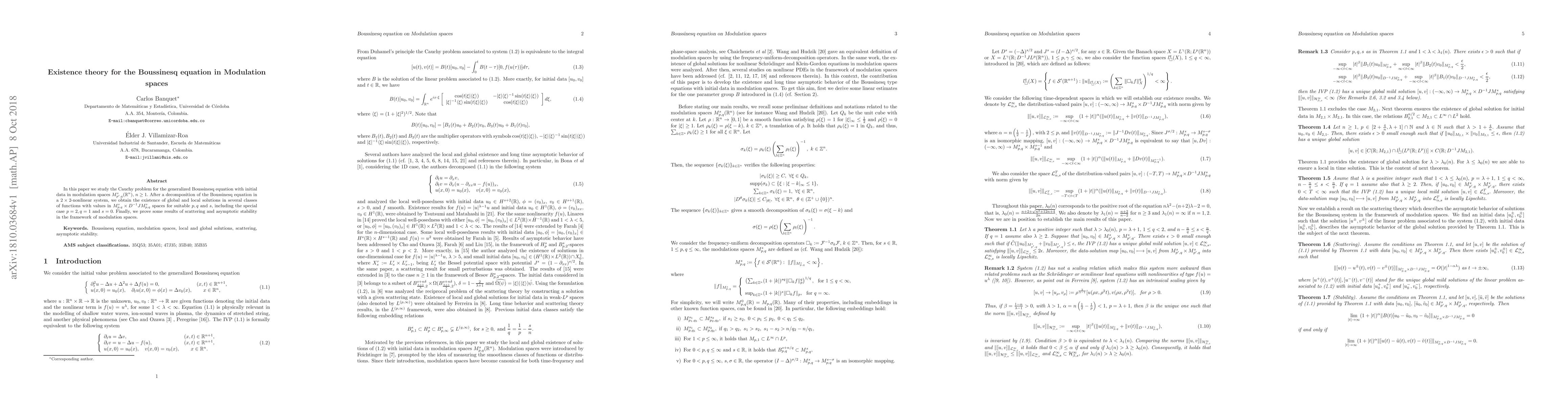 This paper investigates the Cauchy problem for the generalized Boussinesq equation with initial data in modulation spaces, establishing the existence of global and local solutions in specific function spaces, and proving scattering and asymptotic stability results.