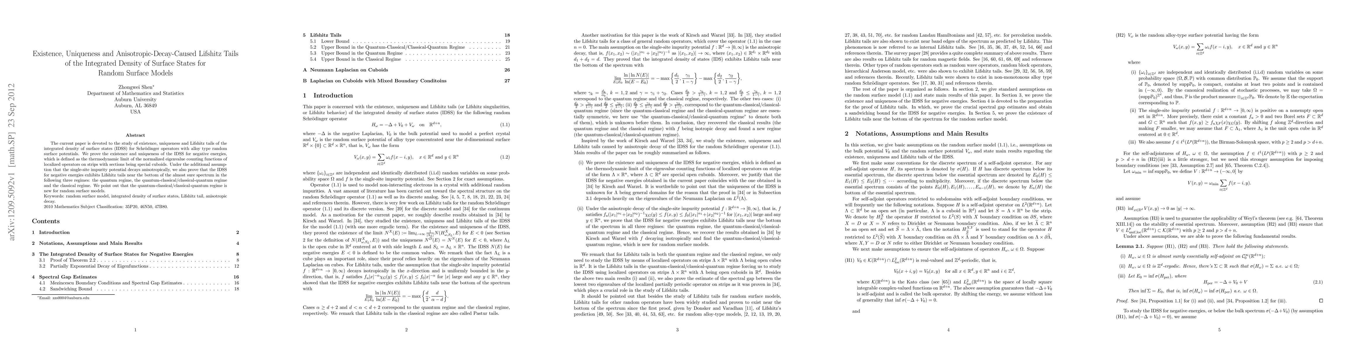 The current paper is devoted to the study of existence, uniqueness and Lifshitz tails of the integrated density of surface states (IDSS) for Schr\"{o}dinger operators with alloy type random surface potentials. We prove the existence and uniqueness of the IDSS for negative energies, which is defined as the thermodynamic limit of the normalized eigenvalue counting functions of localized operators on strips with sections being special cuboids. Under the additional assumption that the single-site impurity potential decays anisotropically, we also prove that the IDSS for negative energies exhibits Lifshitz tails near the bottom of the almost sure spectrum in the following three regimes: the quantum regime, the quantum-classical/classical-quantum regime and the classical regime. We point out that the quantum-classical/classical-quantum regime is new for random surface models.