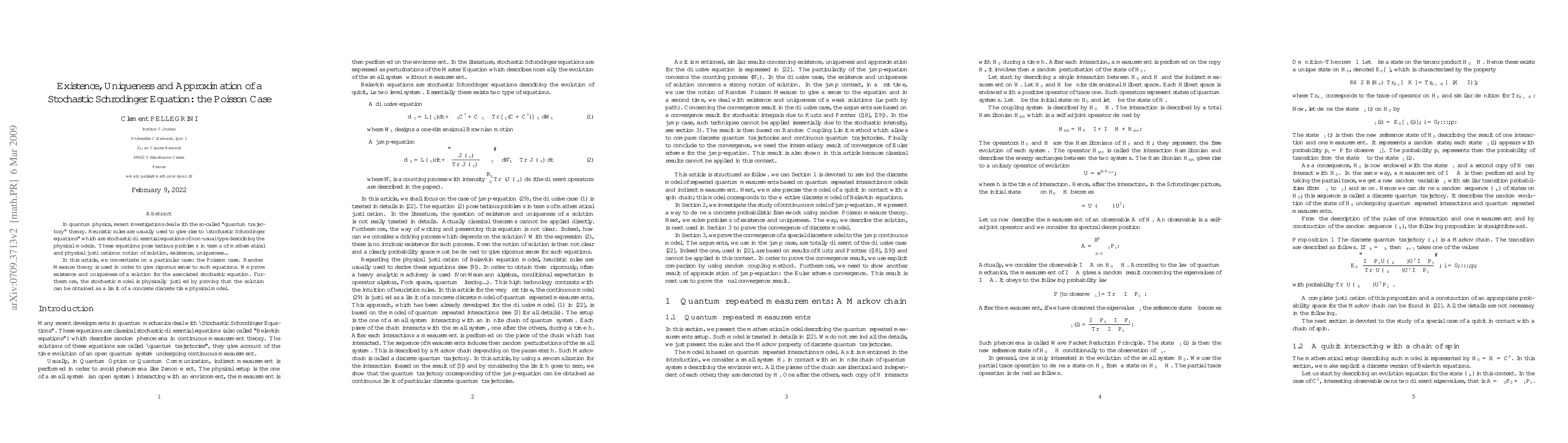 This paper establishes rigorous mathematical foundations for stochastic Schrodinger equations in quantum physics, proving existence and uniqueness of solutions using random measure theory, and justifying the physical model through a discrete time approximation.