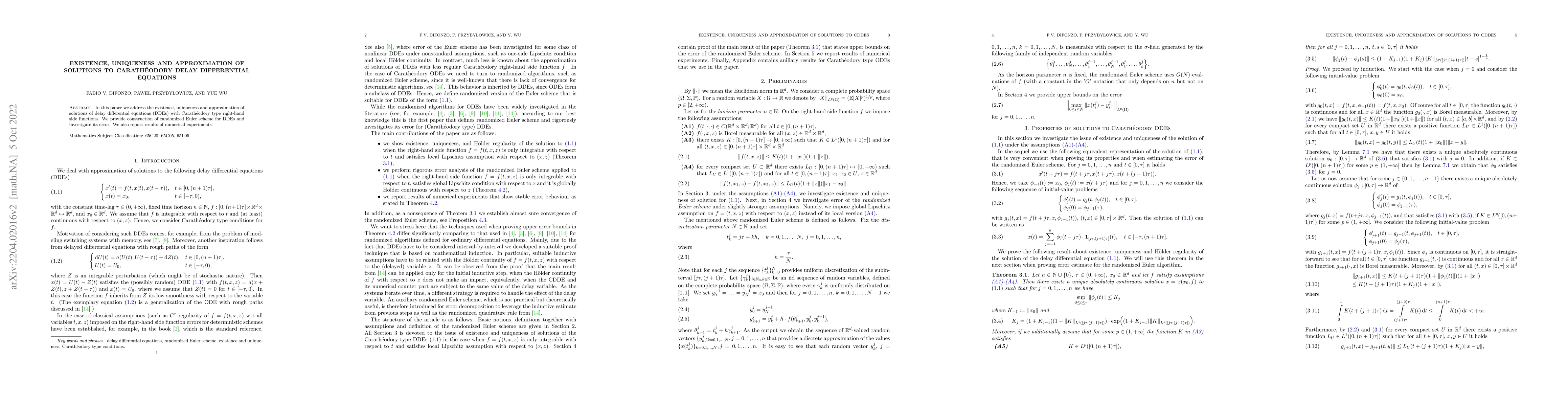 This paper investigates the existence, uniqueness, and approximation of solutions for delay differential equations (DDEs) characterized by Carathéodory functions. It constructs a randomized Euler scheme for DDEs and analyzes its error, supplemented by numerical experiments.