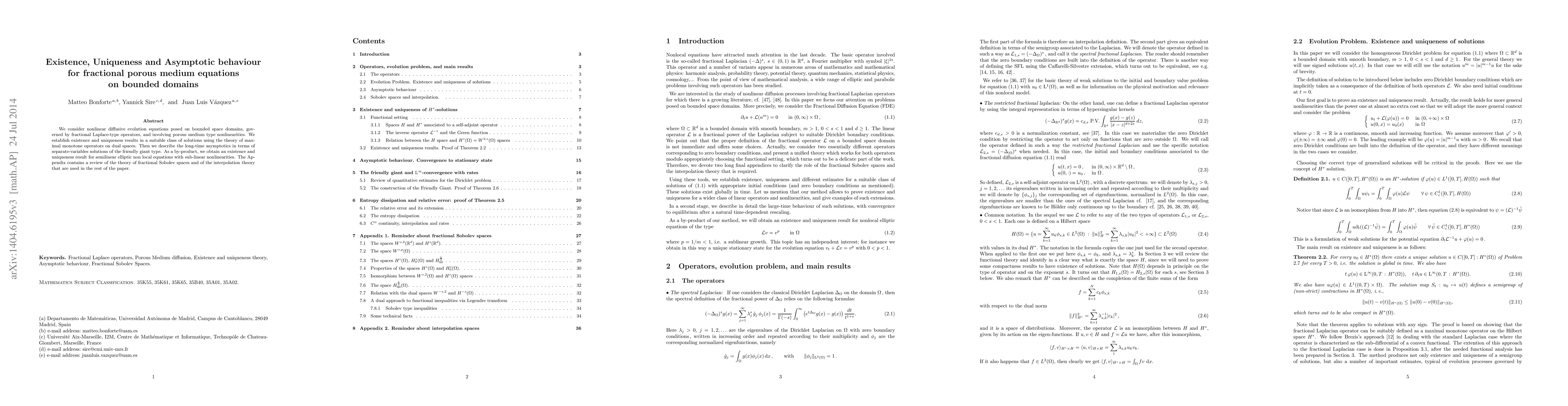 This paper establishes existence, uniqueness, and asymptotic behavior for fractional porous medium equations on bounded domains, utilizing maximal monotone operators and fractional Sobolev spaces. It also derives results for semilinear elliptic nonlocal equations with sub-linear nonlinearities.