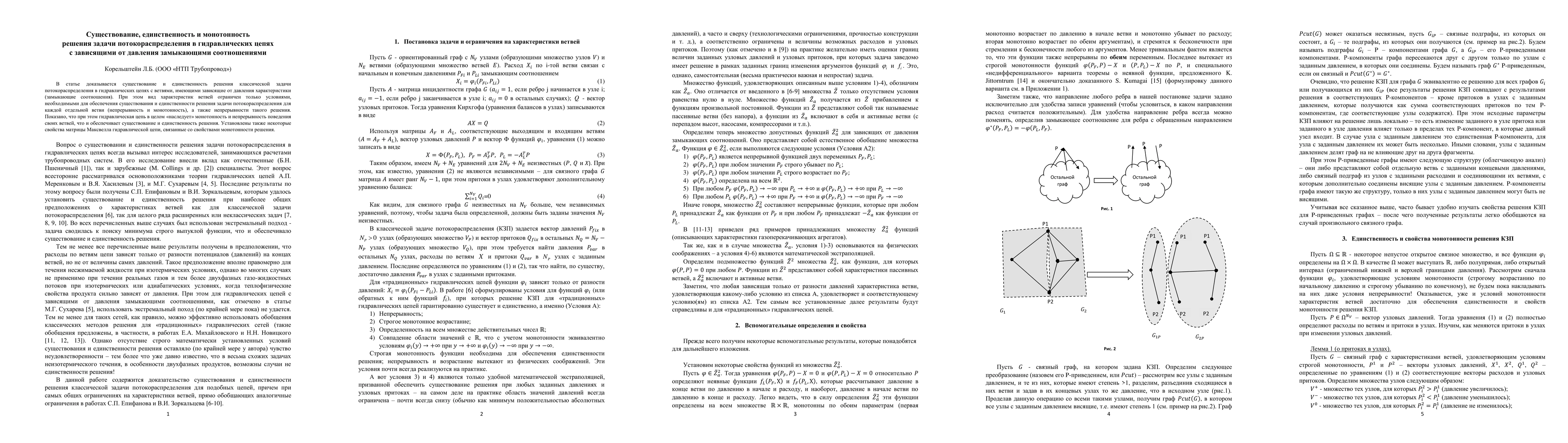 Existence, Uniqueness and monotonic behavior of the solution of classical flow distribution problem for hydraulic networks with pressure-dependent closure relations was proved. Structure and properties of inverse Maxwell matrix of the problem were investigated
