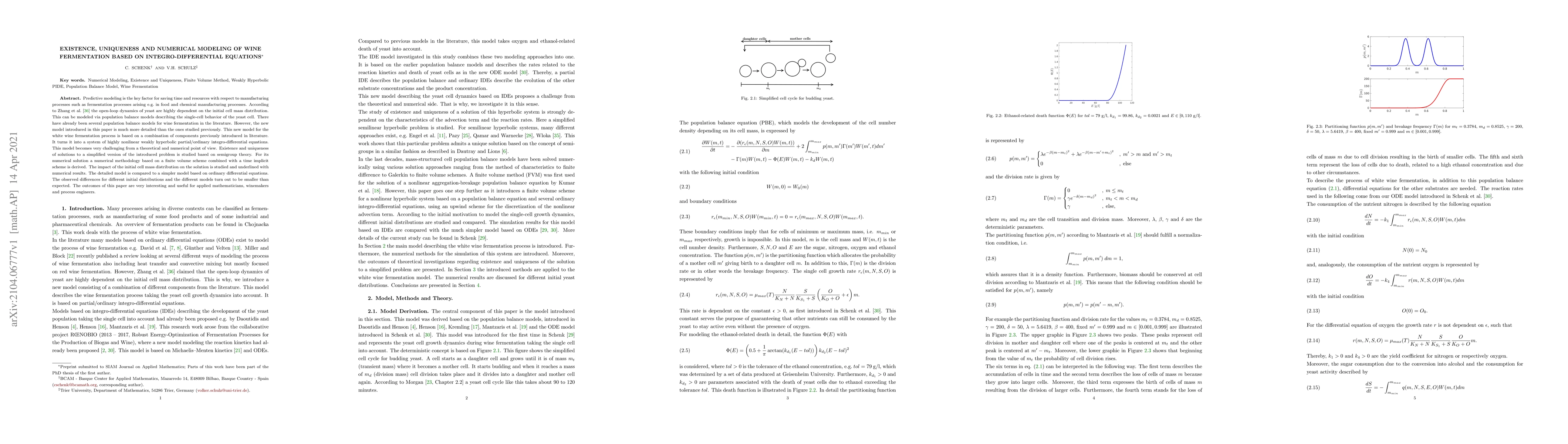The paper presents a novel, highly detailed population balance model for wine fermentation based on integro-differential equations, along with a numerical solution scheme based on finite volumes and an implicit time discretization.