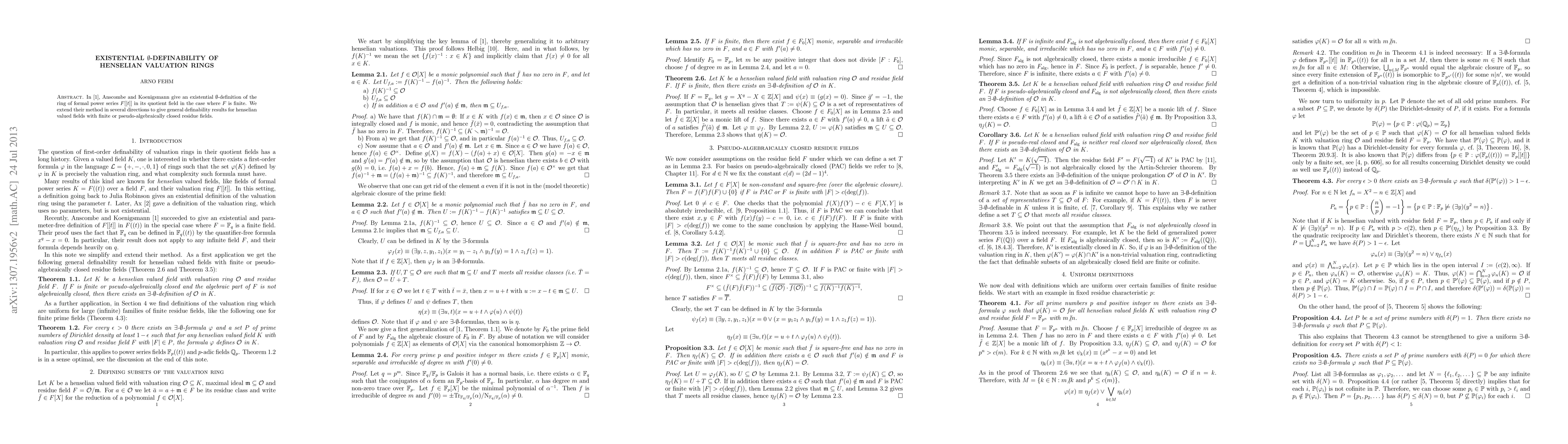 Summary: Anscombe and Koenigsmann's existential 0-definition of formal power series rings is extended to provide general definability results for henselian valued fields with finite or pseudo-algebraically closed residue fields. This work broadens the applicability of existential 0-definitions in valuation theory.