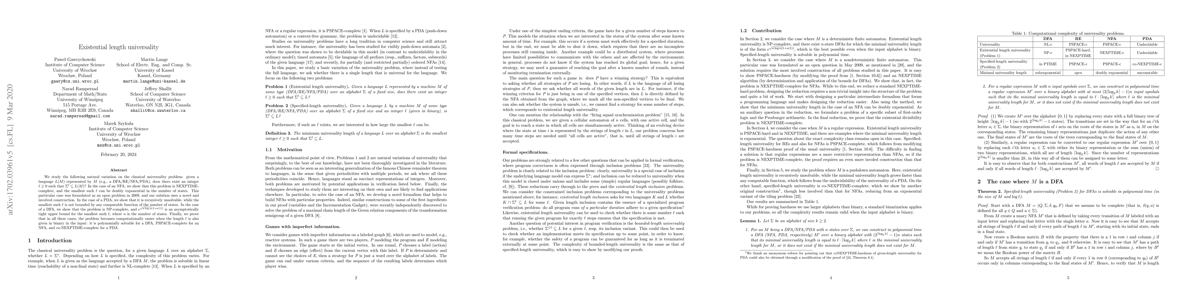 We study the following natural variation on the classical universality problem: given a language $L(M)$ represented by $M$ (e.g., a DFA/RE/NFA/PDA), does there exist an integer $\ell \geq 0$ such that $\Sigma^\ell \subseteq L(M)$? In the case of an NFA, we show that this problem is NEXPTIME-complete, and the smallest such $\ell$ can be doubly exponential in the number of states. This particular case was formulated as an open problem in 2009, and our solution uses a novel and involved construction. In the case of a PDA, we show that it is recursively unsolvable, while the smallest such $\ell$ is not bounded by any computable function of the number of states. In the case of a DFA, we show that the problem is NP-complete, and $e^{\sqrt{n \log n} (1+o(1))}$ is an asymptotically tight upper bound for the smallest such $\ell$, where $n$ is the number of states. Finally, we prove that in all these cases, the problem becomes computationally easier when the length $\ell$ is also given in binary in the input: it is polynomially solvable for a DFA, PSPACE-complete for an NFA, and co-NEXPTIME-complete for a PDA.
