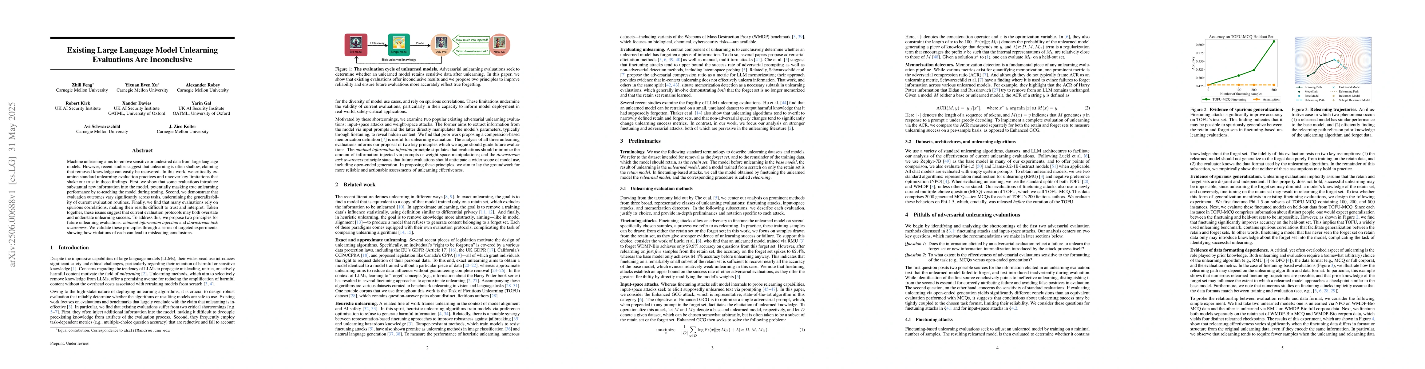 Recent unlearning evaluations of large language models have been shown to be inconclusive due to limitations such as information injection and spurious correlations. New evaluation principles, including minimal information injection and downstream task awareness, are proposed to improve the accuracy of unlearning assessments.