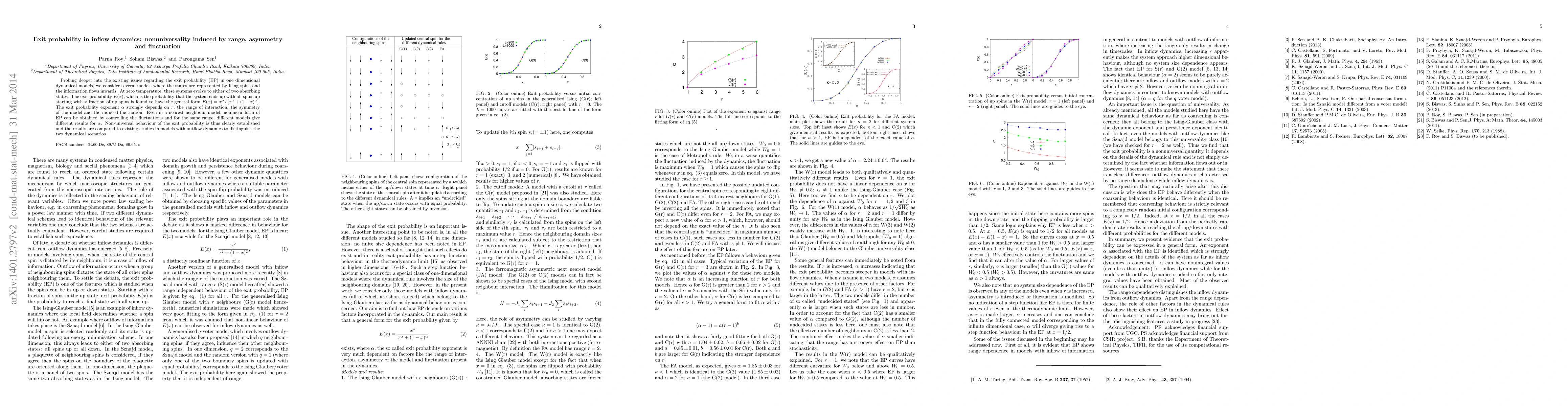 Probing deeper into the existing issues regarding the exit probability (EP) in one dimensional dynamical models, we consider several models where the states are represented by Ising spins and the information flows inwards. At zero temperature, these systems evolve to either of two absorbing states. The exit probability $E(x)$, which is the probability that the system ends up with all spins up starting with $x$ fraction of up spins is found to have the general form $E(x) = x^\alpha/\left[x^\alpha + (1-x)^\alpha\right]$. The exit probability exponent $\alpha$ strongly depends on $r$, the range of interaction, the symmetry of the model and the induced fluctuation. Even in a nearest neighbour model, nonlinear form of EP can be obtained by controlling the fluctuations and for the same range, different models give different results for $\alpha$. Non-universal behaviour of the exit probability is thus clearly established and the results are compared to existing studies in models with outflow dynamics to distinguish the two dynamical scenarios.
