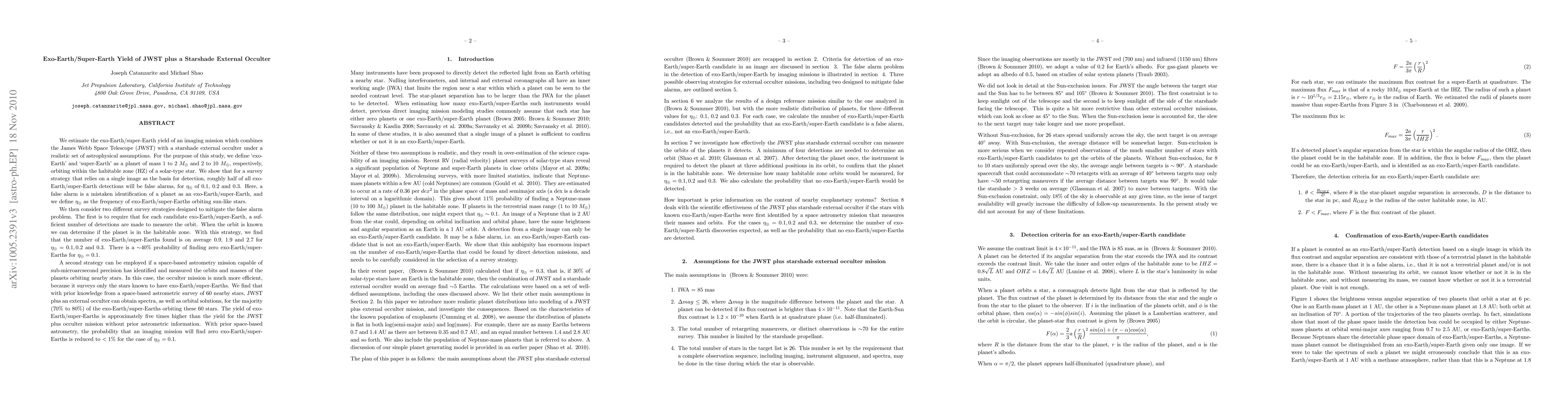 We examine the scientific viability of an imaging mission to find exo-Earths combining the James Webb Space Telescope (JWST) with a starshade external occulter under a realistic set of astrophysical assumptions. We define an exo-Earth as a planet of 1 to 10 Earth masses orbiting in the habitable zone (HZ) of a solar-type star. We show that for a survey strategy that relies on a single image to detect an exo-Earth, roughly half of all exo-Earth detections will be false alarms. Here, a false alarm is a mistaken identification of a planet as an exo-Earth. We consider two survey strategies designed to mitigate the false alarm problem. The first is to require that for each potential exo-Earth, a sufficient number of detections are made to measure the orbit. When the orbit is known we can determine if the planet is in the habitable zone. With this strategy, we find that the number of exo-Earths found is on average 0.9, 1.9 and 2.7 for {\eta}_Earth = 0.1, 0.2 and 0.3. Here, {\eta}_Earth is the frequency of exo-Earths orbiting solar-type stars. There is a ~40% probability of finding zero exo-Earths for {\eta}_Earth = 0.1. A second strategy can be employed if a space astrometry mission has identified and measured the orbits and masses of the planets orbiting nearby stars. We find that with prior space-based astrometry from a survey of 60 nearby stars, JWST plus an external occulter can obtain orbital solutions for the majority (70% to 80%) of the exo-Earths orbiting these 60 stars. The exo-Earth yield is approximately five times higher than the yield for the JWST plus occulter mission without prior astrometry. With prior astrometry, the probability that an imaging mission will find zero exo-Earths is reduced to below 1% for the case of {\eta}_Earth = 0.1.