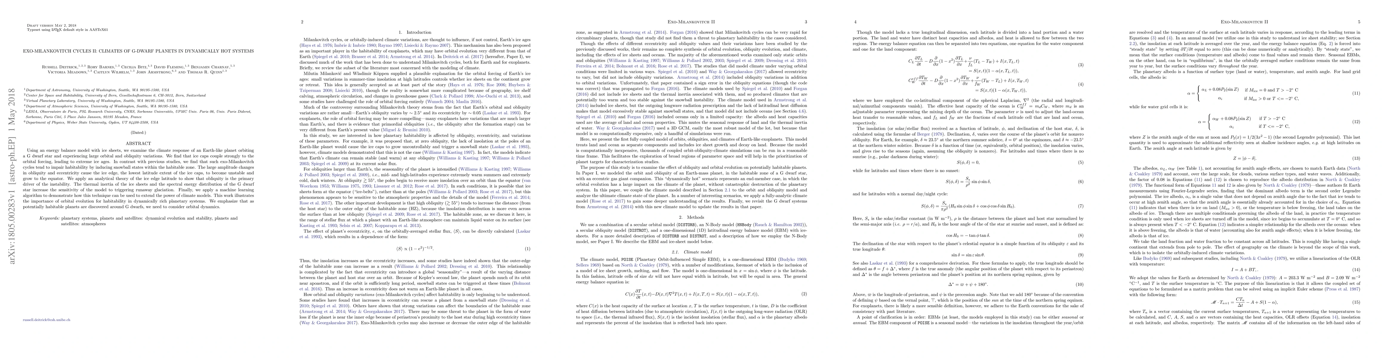This paper uses an energy balance model to study the climate of Earth-like planets orbiting G dwarf stars with significant orbital and obliquity variations, finding that extreme ice ages and snowball states can impair habitability. The study highlights the destabilizing effect of obliquity on ice caps and the importance of considering orbital dynamics in assessing habitability.