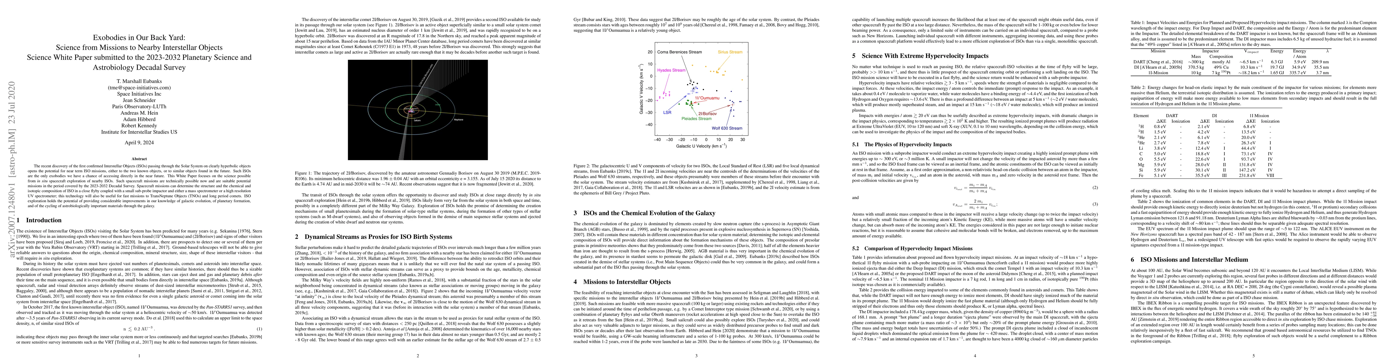 The recent discovery of the first confirmed Interstellar Objects (ISOs) passing through the Solar System on clearly hyperbolic objects opens the potential for near term ISO missions, either to the two known objects, or to similar objects found in the future. Such ISOs are the only exobodies we have a chance of accessing directly in the near future. This White Paper focuses on the science possible from in situ spacecraft exploration of nearby ISOs. Such spacecraft missions are technically possible now and are suitable potential missions in the period covered by the 2023-2032 Decadal Survey. Spacecraft missions can determine the structure and the chemical and isotopic composition of ISO in a close flyby coupled with a small sub-probe impactor and either a mass spectrometer or a high resolution UV spectrometer; this technology will also be useful for fast missions to TransNeptune Objects (TNOs) and long period comets. ISO exploration holds the potential of providing considerable improvements in our knowledge of galactic evolution, of planetary formation, and of the cycling of astrobiologically important materials through the galaxy.