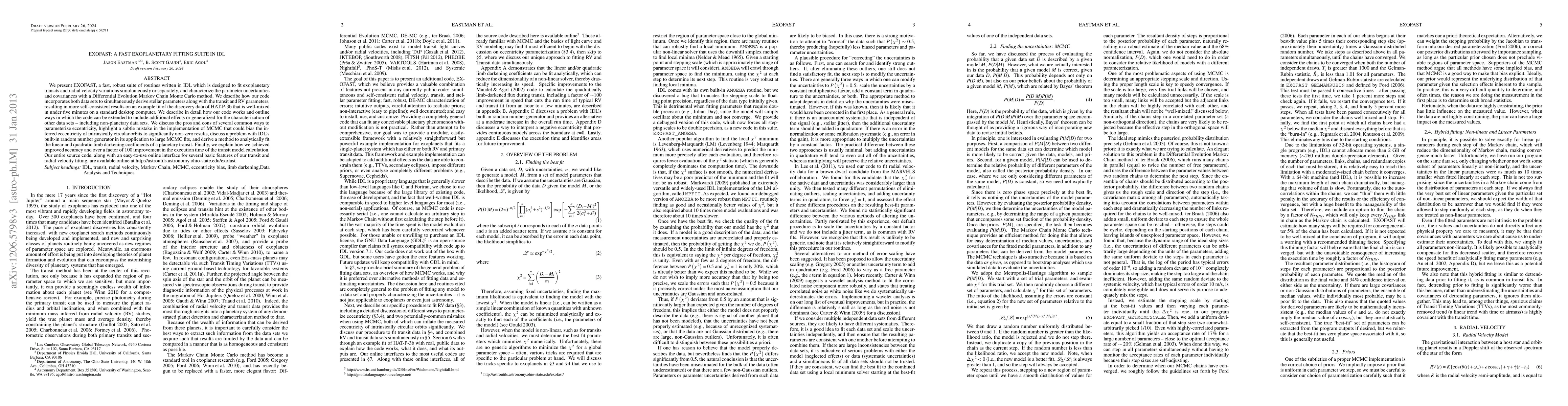 EXOFAST introduces a fast, robust, and self-consistent exoplanetary fitting suite in IDL, incorporating simultaneous fitting of transit and RV data, and addressing biases in eccentricity estimation.