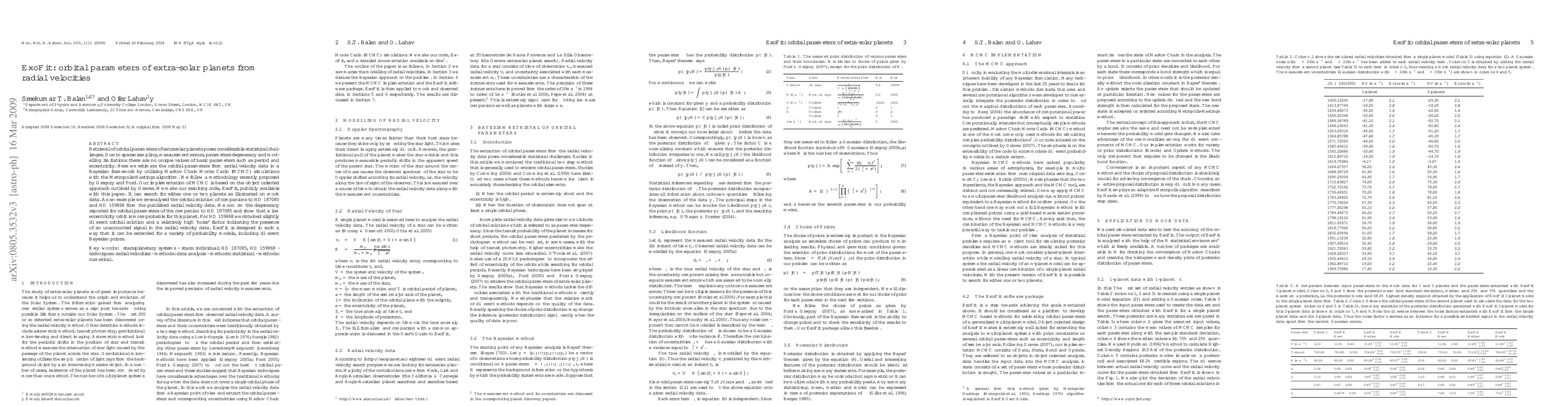 Researchers developed ExoFit, a Bayesian framework using Markov Chain Monte Carlo simulations to estimate orbital parameters of extrasolar planets from radial velocity data.