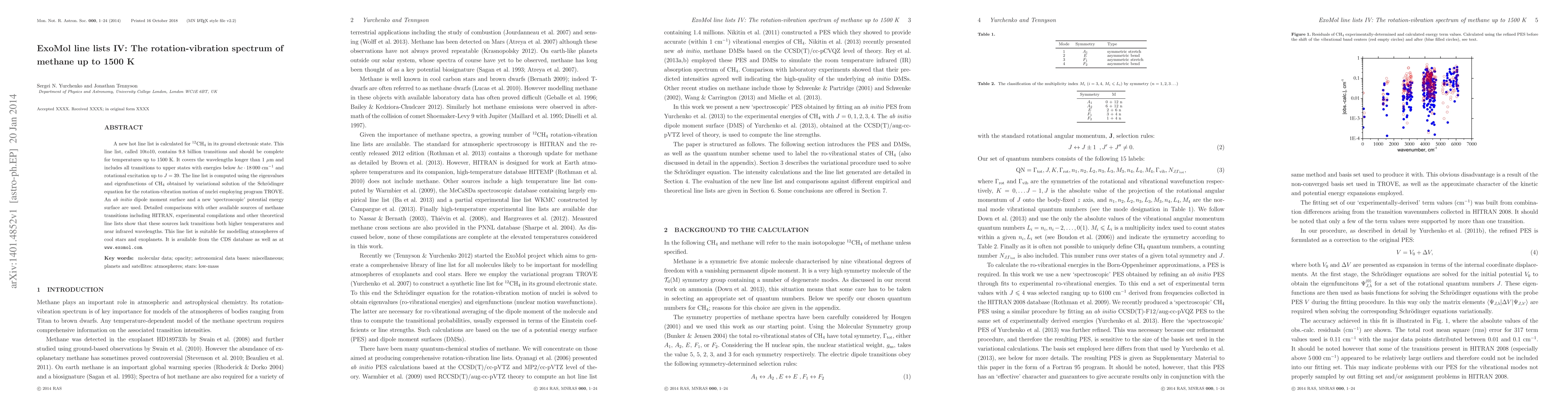 This paper presents a comprehensive new line list, 10to10, for the $^{12}$CH$_4$ molecule, containing 9.8 billion transitions valid up to 1500 K, suitable for modeling cool star and exoplanet atmospheres. The list surpasses existing sources in completeness for high-temperature and near-infrared wavelengths.