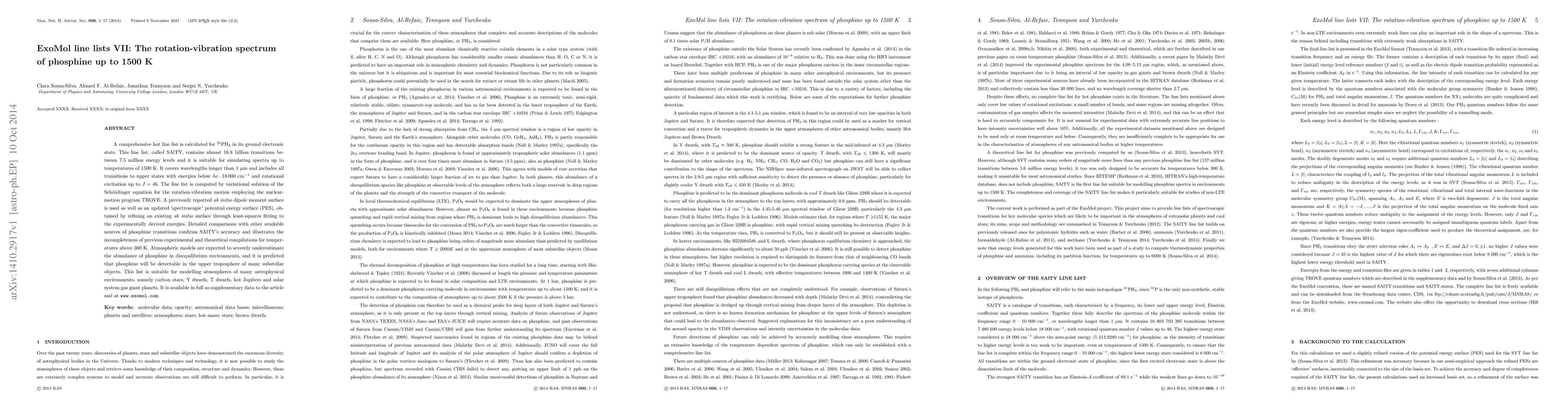 A comprehensive hot line list is calculated for $^{31}$PH$_3$ in its ground electronic state. This line list, called SAlTY, contains almost 16.8 billion transitions between 7.5 million energy levels and it is suitable for simulating spectra up to temperatures of 1500~K. It covers wavelengths longer than 1~$\mu$m and includes all transitions to upper states with energies below $hc \cdot 18\,000$~cm$^{-1}$ and rotational excitation up to $J=46$. The line list is computed by variational solution of the Schr\"odinger equation for the rotation-vibration motion employing the nuclear-motion program TROVE. A previously reported {\it ab initio} dipole moment surface is used as well as an updated `spectroscopic' potential energy surface (PES), obtained by refining an existing \textit{ab initio} surface through least-squares fitting to the experimentally derived energies. Detailed comparisons with other available sources of phosphine transitions confirms SAlTY's accuracy and illustrates the incompleteness of previous experimental and theoretical compilations for temperatures above 300 K. Atmospheric models are expected to severely underestimate the abundance of phosphine in disequilibrium environments, and it is predicted that phosphine will be detectable in the upper troposphere of many substellar objects. This list is suitable for modelling atmospheres of many astrophysical environments, namely carbon stars, Y dwarfs, T dwarfs, hot Jupiters and solar system gas giant planets. It is available in full as supplementary data to the article and at \url{www.exomol.com}.