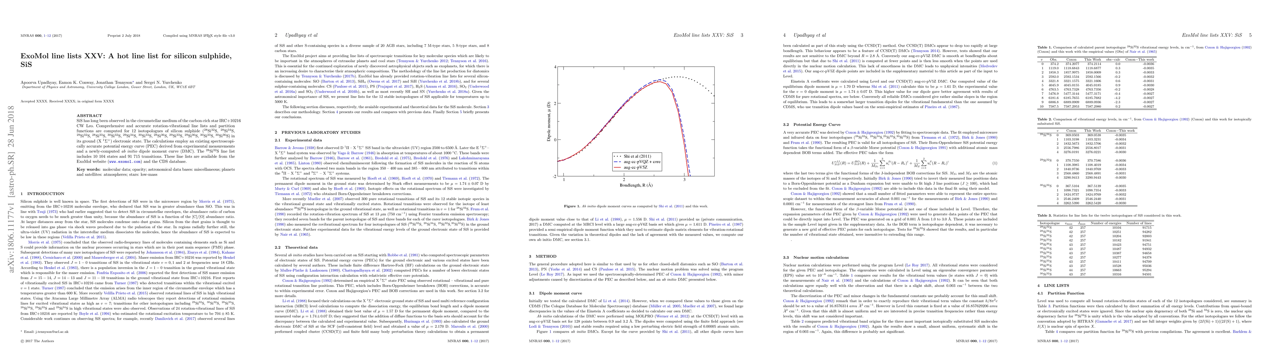 This paper presents detailed rotation-vibrational line lists and partition functions for 12 isotopologues of silicon sulphide (SiS) using accurate potential and dipole moment curves. The $^{28}$Si$^{32}$S line list includes 10104 states and 91715 transitions, available for research on the ExoMol website and CDS database.