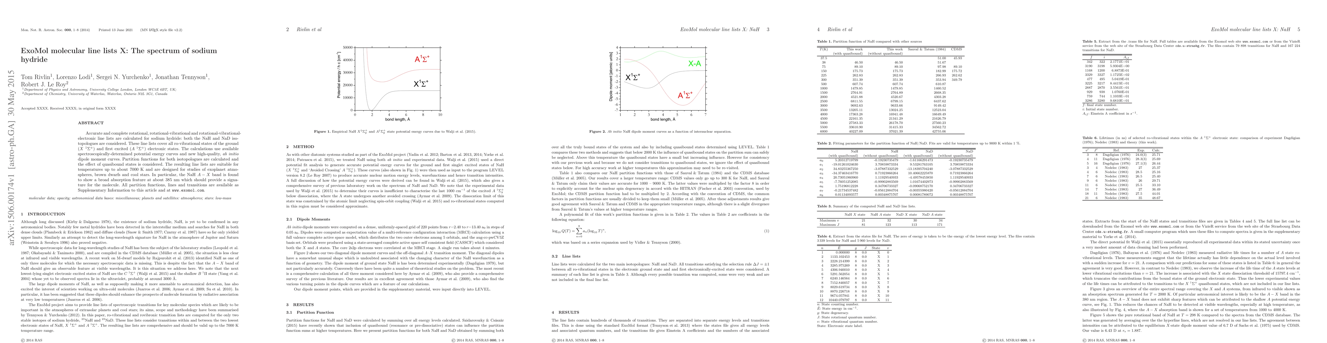 Accurate and complete rotational, rotational-vibrational and rotational-vibrational-electronic line lists are calculated for sodium hydride: both the NaH and NaD isotopologues are considered. These line lists cover all ro-vibrational states of the ground ($X$~$^1\Sigma^+$) and first excited ($A$~$^1\Sigma^+$) electronic states. The calculations use available spectroscopically-determined potential energy curves and new high-quality, \textit{ab initio} dipole moment curves. Partition functions for both isotopologues are calculated and the effect of quasibound states is considered. The resulting line lists are suitable for temperatures up to about 7000~K and are designed for studies of exoplanet atmospheres, brown dwarfs and cool stars. In particular, the NaH $A-X$ band is found to show a broad absorption feature at about 385 nm which should provide a signature for the molecule. All partition functions, lines and transitions are available as Supplementary Information to this article and at \url{www.exomol.com}.