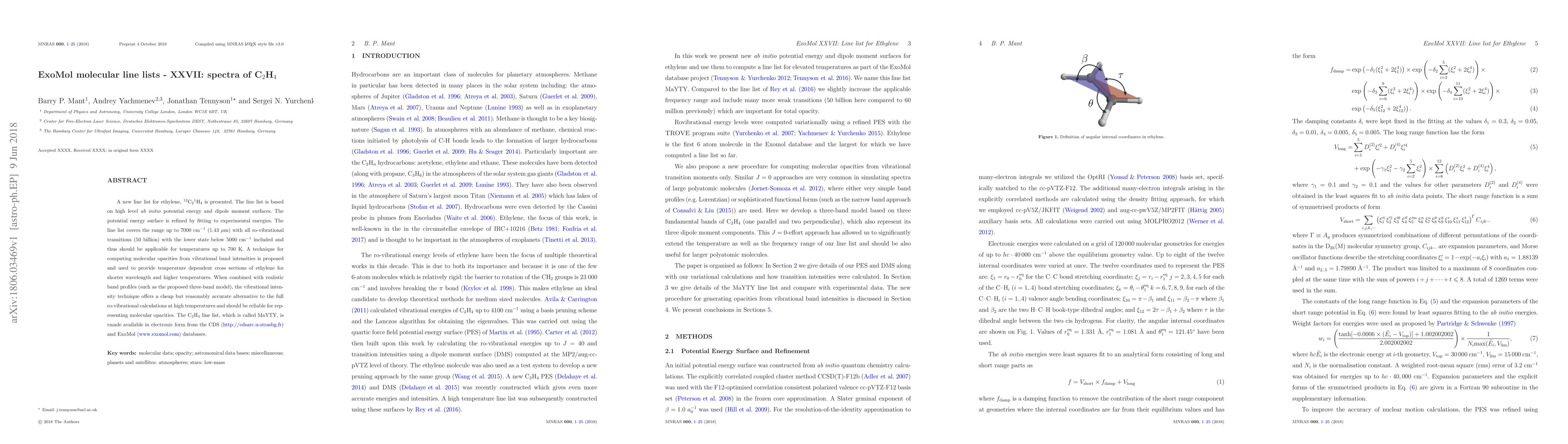 A new line list for ethylene, $^{12}$C$_2$$^1$H$_4$ is presented. The line list is based on high level ab initio potential energy and dipole moment surfaces. The potential energy surface is refined by fitting to experimental energies. The line list covers the range up to 7000 cm$^{-1}$ (1.43 $\mu$m) with all ro-vibrational transitions (50 billion) with the lower state below 5000 cm$^{-1}$ included and thus should be applicable for temperatures up to 700 K. A technique for computing molecular opacities from vibrational band intensities is proposed and used to provide temperature dependent cross sections of ethylene for shorter wavelength and higher temperatures. When combined with realistic band profiles (such as the proposed three-band model), the vibrational intensity technique offers a cheap but reasonably accurate alternative to the full ro-vibrational calculations at high temperatures and should be reliable for representing molecular opacities. The C$_2$H$_4$ line list, which is called MaYTY, is made available in electronic form from the CDS.