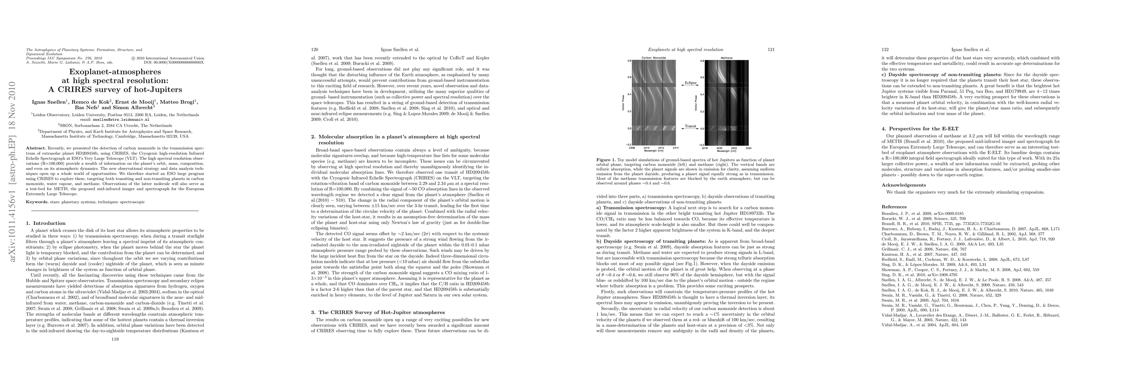 This study utilizes CRIRES on ESO's VLT to detect carbon monoxide in the atmosphere of the exoplanet HD209458b, revealing detailed insights into its composition and dynamics. The authors have initiated a broader survey to explore additional hot-Jupiters in carbon monoxide, water vapour, and methane, with the aim of testing future mid-infrared instruments.