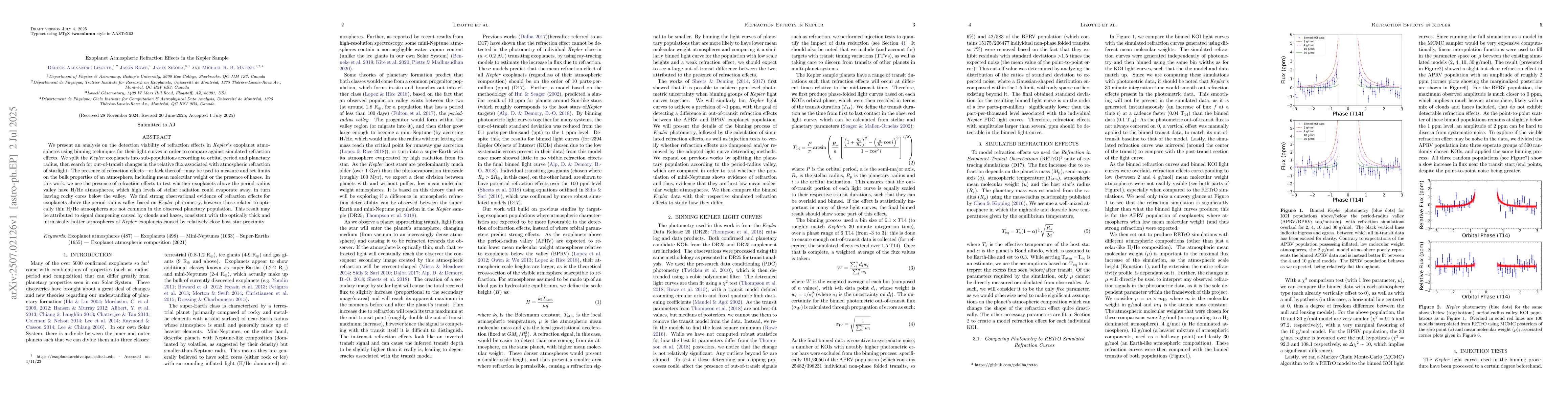 The research analyzes Kepler exoplanet light curves for refraction effects, indicating that exoplanets above the period-radius valley likely possess atmospheres, though optically thin H/He atmospheres are uncommon. This may be due to atmospheric cloud or haze dampening, suggesting Kepler exoplanets' atmospheres are typically thick and hot because of proximity to their stars.