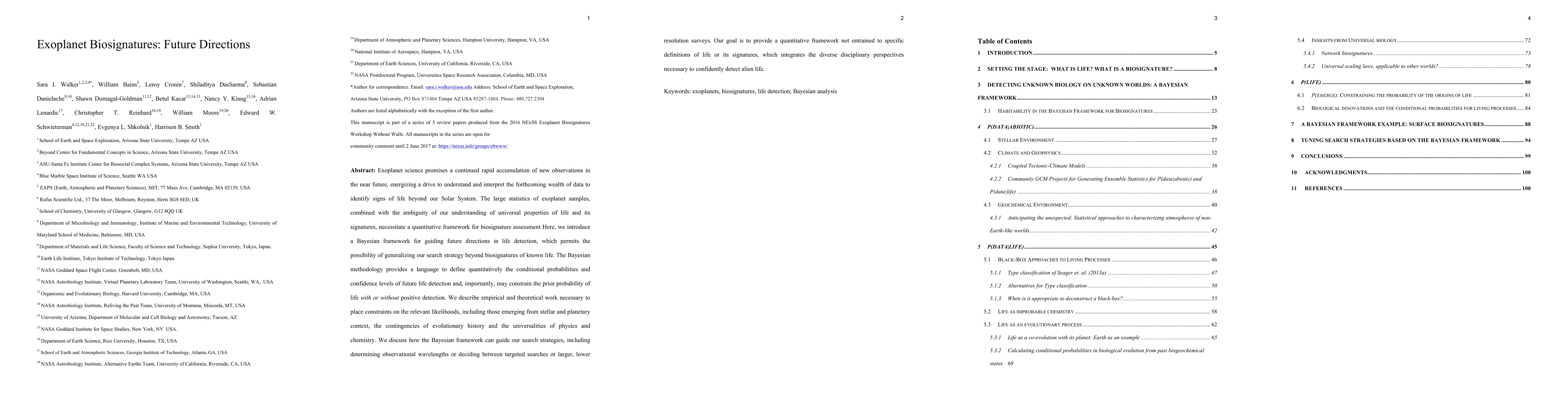 Exoplanet science promises a continued rapid accumulation of new observations in the near future, energizing a drive to understand and interpret the forthcoming wealth of data to identify signs of life beyond our Solar System. The large statistics of exoplanet samples, combined with the ambiguity of our understanding of universal properties of life and its signatures, necessitate a quantitative framework for biosignature assessment Here, we introduce a Bayesian framework for guiding future directions in life detection, which permits the possibility of generalizing our search strategy beyond biosignatures of known life. The Bayesian methodology provides a language to define quantitatively the conditional probabilities and confidence levels of future life detection and, importantly, may constrain the prior probability of life with or without positive detection. We describe empirical and theoretical work necessary to place constraints on the relevant likelihoods, including those emerging from stellar and planetary context, the contingencies of evolutionary history and the universalities of physics and chemistry. We discuss how the Bayesian framework can guide our search strategies, including determining observational wavelengths or deciding between targeted searches or larger, lower resolution surveys. Our goal is to provide a quantitative framework not entrained to specific definitions of life or its signatures, which integrates the diverse disciplinary perspectives necessary to confidently detect alien life.