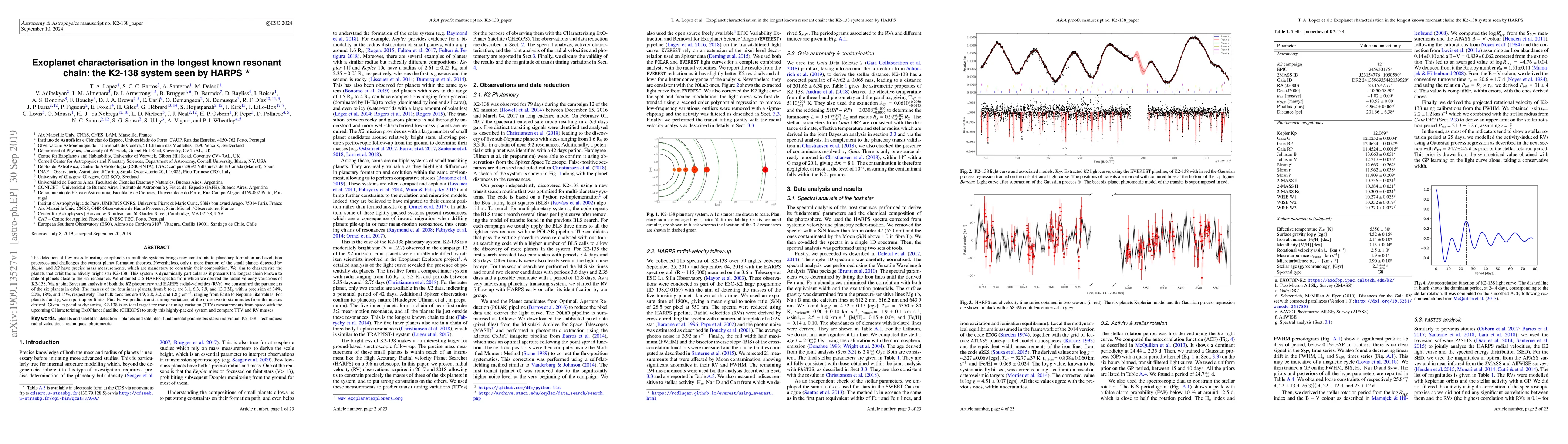 This study characterizes six exoplanets in the K2-138 system, known for its longest resonant chain, using HARPS radial-velocity data and K2 photometry. The inner four planets have precise mass measurements, ranging from 3.1 to 13.0 Earth masses, providing insights into planetary formation theories.
