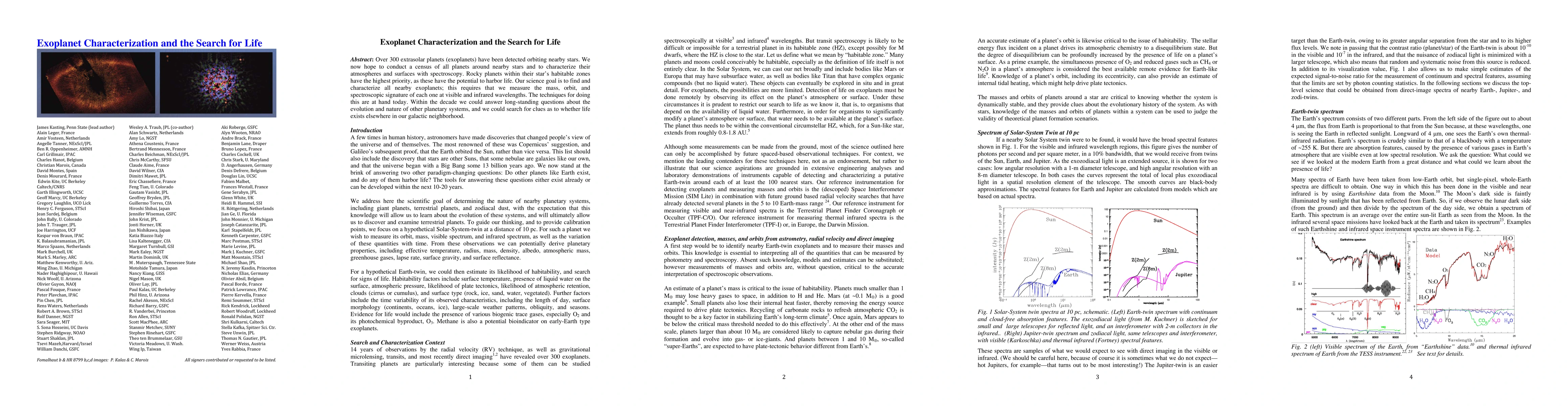 Over 300 extrasolar planets (exoplanets) have been detected orbiting nearby stars. We now hope to conduct a census of all planets around nearby stars and to characterize their atmospheres and surfaces with spectroscopy. Rocky planets within their star's habitable zones have the highest priority, as these have the potential to harbor life. Our science goal is to find and characterize all nearby exoplanets; this requires that we measure the mass, orbit, and spectroscopic signature of each one at visible and infrared wavelengths. The techniques for doing this are at hand today. Within the decade we could answer long-standing questions about the evolution and nature of other planetary systems, and we could search for clues as to whether life exists elsewhere in our galactic neighborhood.