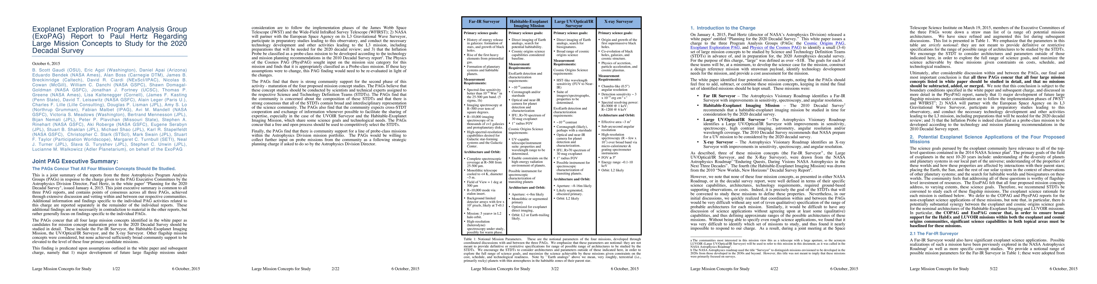 The Exoplanet Exploration Program Analysis Group (ExoPAG) recommends studying four large mission concepts for the 2020 Decadal Survey: the Far-IR Surveyor, the Habitable-Exoplanet Imaging Mission, the UV/Optical/IR Surveyor, and the X-ray Surveyor. These recommendations are contingent on specific assumptions and find strong community support for their maturation.