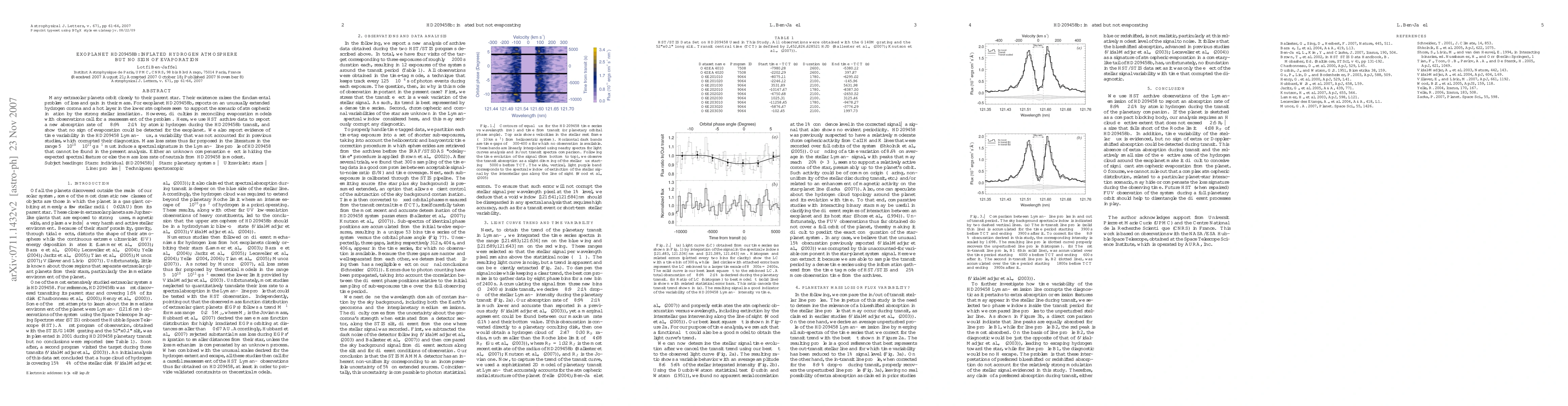 This paper analyzes HD209458b's atmosphere using HST data, finding an 8.9% +/- 2.1% absorption rate by atomic hydrogen but no evidence of atmospheric evaporation, challenging existing mass loss models.