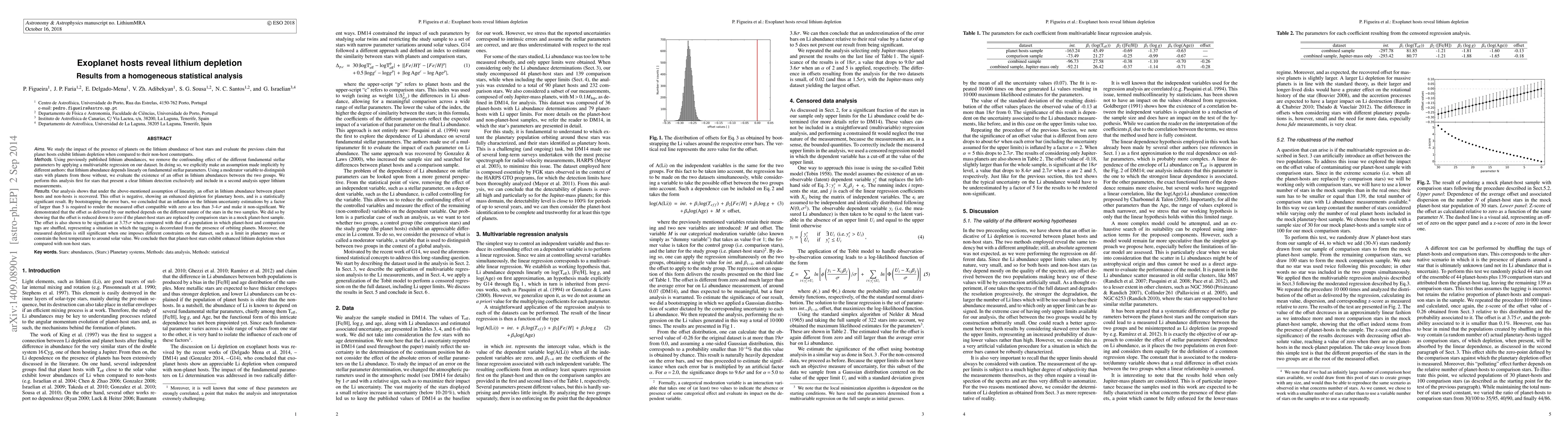 Aims. We study the impact of the presence of planets on the lithium abundance of host stars and evaluate the previous claim that planet hosts exhibit lithium depletion when compared to their non-host counterparts. Methods. Using previously published lithium abundances, we remove the confounding effect of the different fundamental stellar parameters by applying a multivariable regression on our dataset. In doing so, we explicitly make an assumption made implicitly by different authors: that lithium abundance depends linearly on fundamental stellar parameters. Using a moderator variable to distinguish stars with planets from those without, we evaluate the existence of an offset in lithium abundances between the two groups. We perform this analysis first for stars that present a clear lithium detection exclusively and include in a second analysis upper lithium measurements. Results. Our analysis shows that under the above-mentioned assumption of linearity, a statistically significant negative offset in lithium abundance between planet hosts and non-hosts is recovered. We concluded that an inflation on the lithium uncertainty estimations by a factor of larger than 5 is required to render the measured offset compatible with zero at less than 3-4 {\sigma} and make it non-significant. We demonstrated that the offset as delivered by our method depends on the different nature of the stars in the two samples. We did so by showing that the offset is reduced down to zero if the planet-host stars are replaced by comparison stars. Moreover, the measured depletion is still significant when one imposes different constraints on the dataset, such as a limit in planetary mass or constrain the host temperature to around solar value. We conclude then that planet-host stars exhibit enhanced lithium depletion when compared with non-host stars. (abridged)