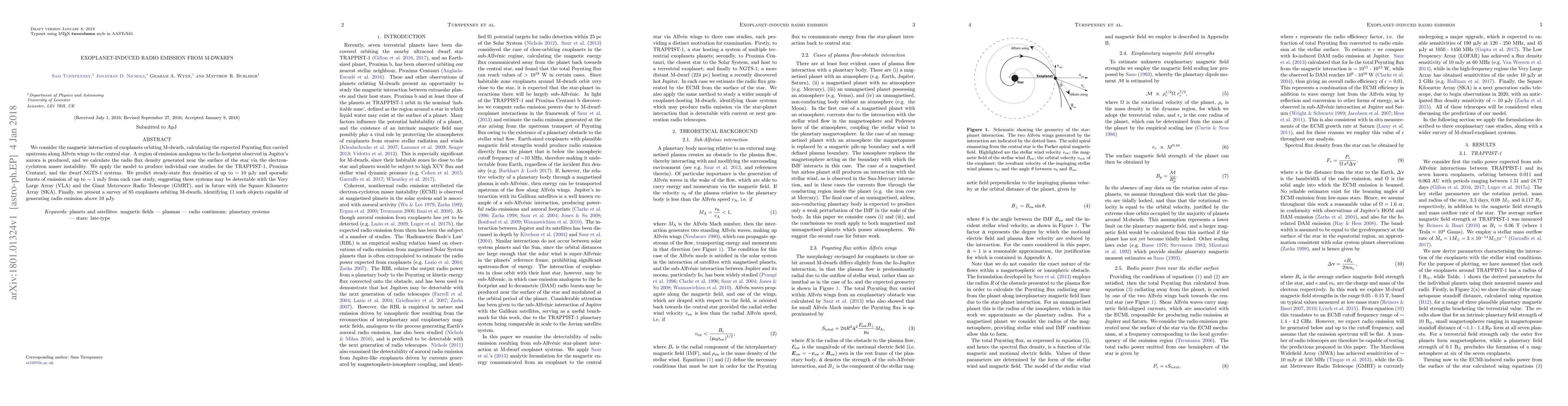 This study investigates the radio emissions from M-dwarf stars influenced by their orbiting exoplanets, predicting detectable radio flux densities and bursts up to 1 mJy. The research identifies 11 M-dwarf systems with exoplanets likely to generate radio emissions above 10 μJy, potentially observable with current and future radio telescopes.