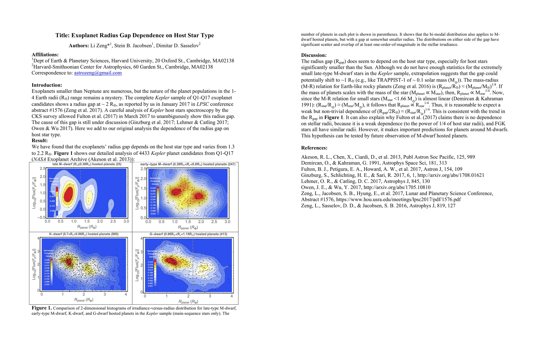 Exoplanets smaller than Neptune are numerous, but the nature of the planet populations in the 1-4 Earth radii range remains a mystery. The complete Kepler sample of Q1-Q17 exoplanet candidates shows a radius gap at ~ 2 Earth radii, as reported by us in January 2017 in LPSC conference abstract #1576 (Zeng et al. 2017). A careful analysis of Kepler host stars spectroscopy by the CKS survey allowed Fulton et al. (2017) in March 2017 to unambiguously show this radius gap. The cause of this gap is still under discussion (Ginzburg et al. 2017; Lehmer & Catling 2017; Owen & Wu 2017). Here we add to our original analysis the dependence of the radius gap on host star type.