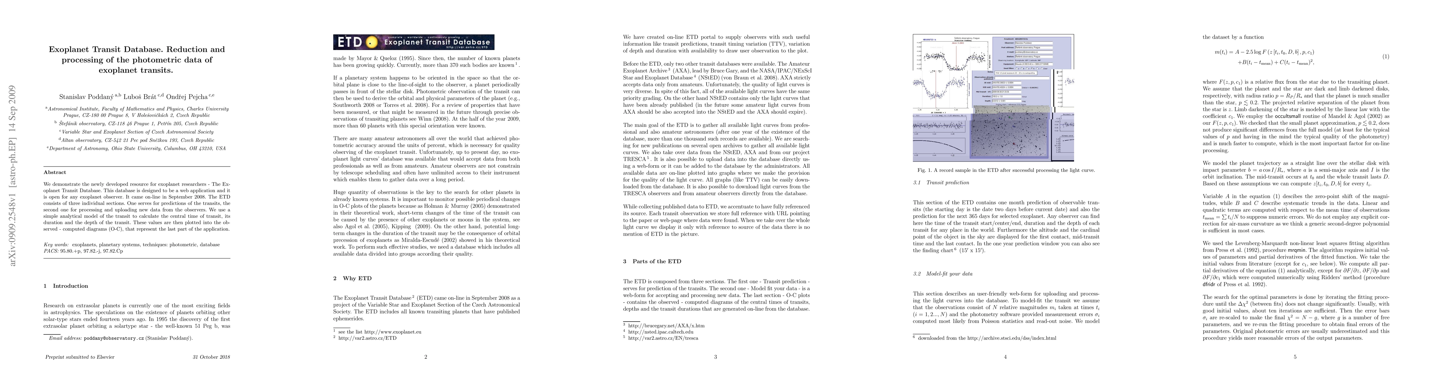 The Exoplanet Transit Database (ETD) is a new web-based resource for exoplanet researchers, launched in September 2008, featuring three sections for transit predictions, data processing, and O-C diagrams based on an analytical transit model. It is open for contributions from any exoplanet observer.
