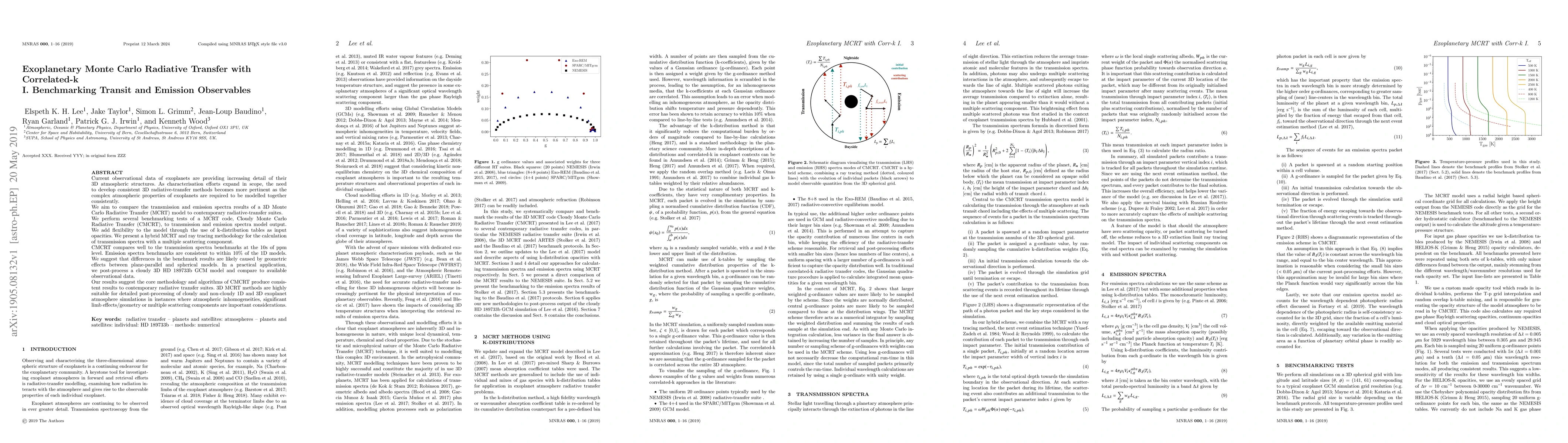Current observational data of exoplanets are providing increasing detail of their 3D atmospheric structures. As characterisation efforts expand in scope, the need to develop consistent 3D radiative-transfer methods becomes more pertinent as the complex atmospheric properties of exoplanets are required to be modelled together consistently. We aim to compare the transmission and emission spectra results of a 3D Monte Carlo Radiative Transfer (MCRT) model to contemporary radiative-transfer suites. We perform several benchmarking tests of a MCRT code, Cloudy Monte Carlo Radiative Transfer (CMCRT), to transmission and emission spectra model output. We add flexibility to the model through the use of k-distribution tables as input opacities. We present a hybrid MCRT and ray tracing methodology for the calculation of transmission spectra with a multiple scattering component. CMCRT compares well to the transmission spectra benchmarks at the 10s of ppm level. Emission spectra benchmarks are consistent to within 10% of the 1D models. We suggest that differences in the benchmark results are likely caused by geometric effects between plane-parallel and spherical models. In a practical application, we post-process a cloudy 3DHD 189733b GCM model and compare to available observational data. Our results suggest the core methodology and algorithms of CMCRT produce consistent results to contemporary radiative transfer suites. 3D MCRT methods are highly suitable for detailed post-processing of cloudy and non-cloudy 1D and 3D exoplanet atmosphere simulations in instances where atmospheric inhomogeneities, significant limb effects/geometry or multiple scattering components are important considerations.