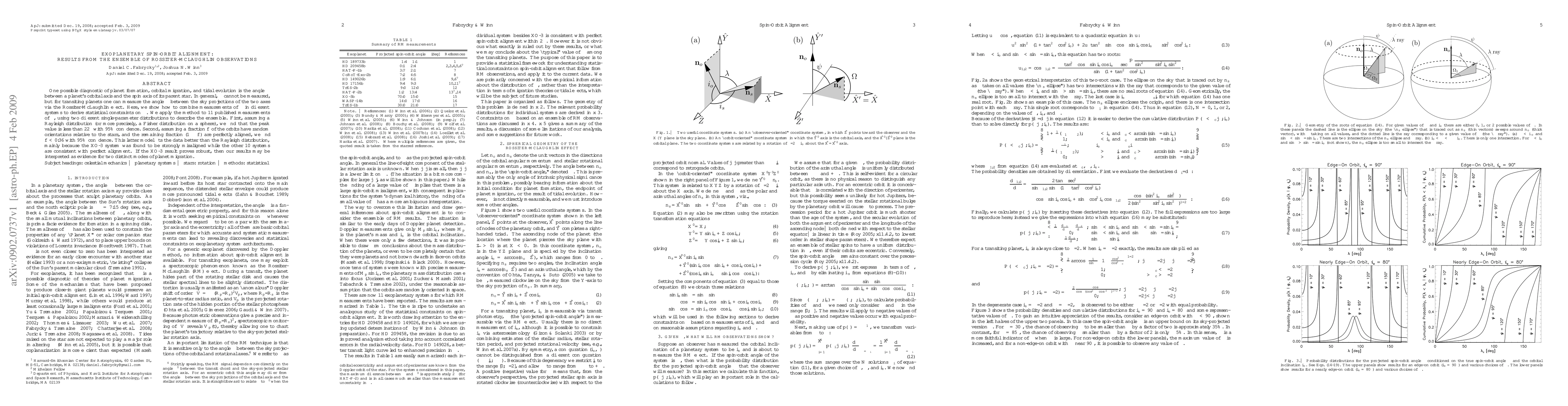 This paper combines Rossiter-McLaughlin observations to statistically infer the spin-orbit alignment angle psi between exoplanets and their host stars. The analysis finds less than 22 degrees for psi with 95% confidence under a Rayleigh distribution, but a better fit is found with a model suggesting less than 36% of orbits are randomly oriented, indicating potential distinct modes of planet migration.