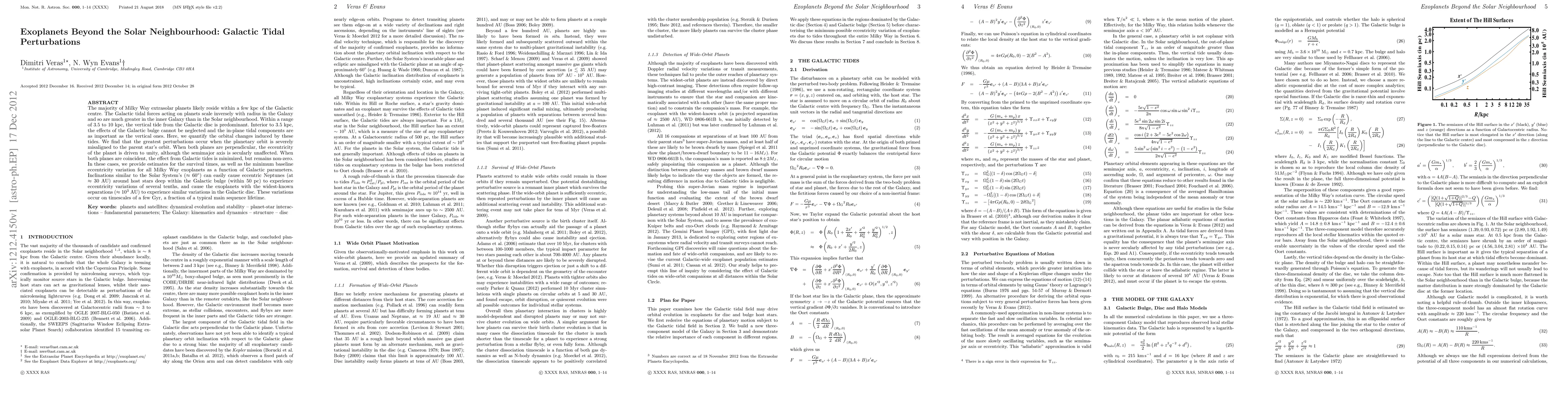 The majority of Milky Way extrasolar planets likely reside within a few kpc of the Galactic centre. The Galactic tidal forces acting on planets scale inversely with radius in the Galaxy and so are much greater in the inner Galaxy than in the Solar neighbourhood. Within a range of 3.5 to 10 kpc, the vertical tide from the Galactic disc is predominant. Interior to 3.5 kpc, the effects of the Galactic bulge cannot be neglected and the in-plane tidal components are as important as the vertical ones. Here, we quantify the orbital changes induced by these tides. We find that the greatest perturbations occur when the planetary orbit is severely misaligned to the parent star's orbit. When both planes are perpendicular, the eccentricity of the planet is driven to unity, although the semimajor axis is secularly unaffected. When both planes are coincident, the effect from Galactic tides is minimized, but remains non-zero. In these cases, we provide estimates for the survival times, as well as the minimum baseline eccentricity variation for all Milky Way exoplanets as a function of Galactic parameters. Inclinations similar to the Solar System's (about 60 degrees) can easily cause eccentric Neptunes (at about 30 AU) around host stars deep within the Galactic bulge (within 50 pc) to experience eccentricity variations of several tenths, and cause the exoplanets with the widest-known separations (at about 1000 AU) to experience similar variations in the Galactic disc. These variations occur on timescales of a few Gyr, a fraction of a typical main sequence lifetime.