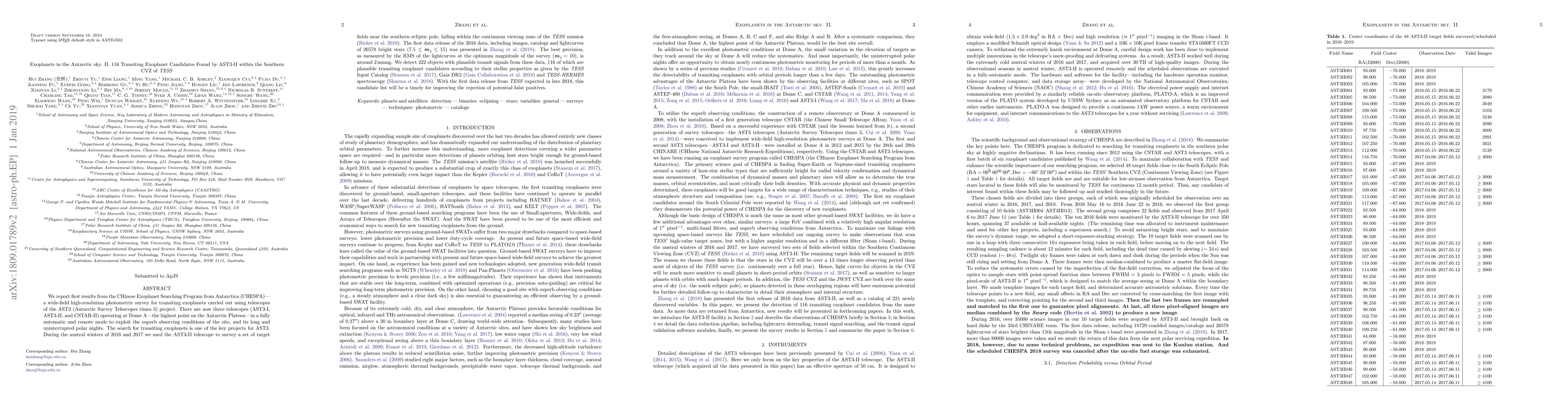 This paper reports the detection of 116 plausible transiting exoplanet candidates from the CHinese Exoplanet Searching Program from Antarctica (CHESPA) using the AST3-II telescope. The survey, conducted during the 2016 and 2017 austral winters, aims to exploit the unique observing conditions of Dome A in Antarctica.