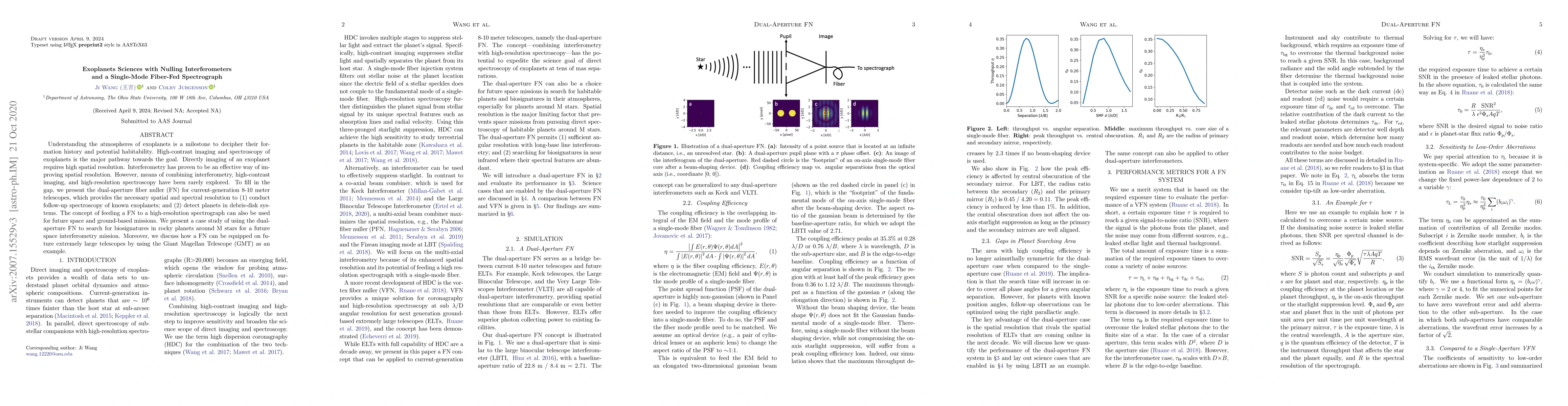This paper explores the integration of nulling interferometry with high-contrast imaging and high-resolution spectroscopy to study exoplanet atmospheres, proposing a dual-aperture fiber nuller (FN) for current and future telescopes. The FN aims to detect exoplanets and search for biosignatures, with applications for both space and ground-based missions.