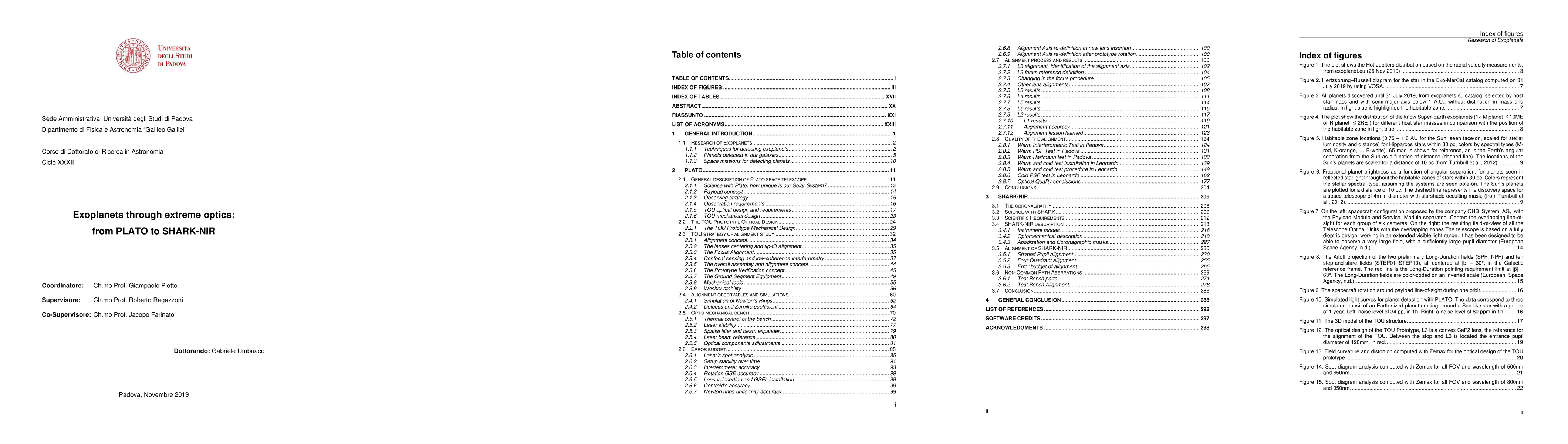 This paper discusses the involvement of the Observatory of Padova in exoplanet detection projects, including the ESA mission PLATO and the SHARK-NIR instrument for the Large Binocular Telescope. PLATO aims to detect exoplanets via transits, while SHARK-NIR focuses on direct imaging and spectroscopy in the NIR domain, leveraging adaptive optics for optimal performance.