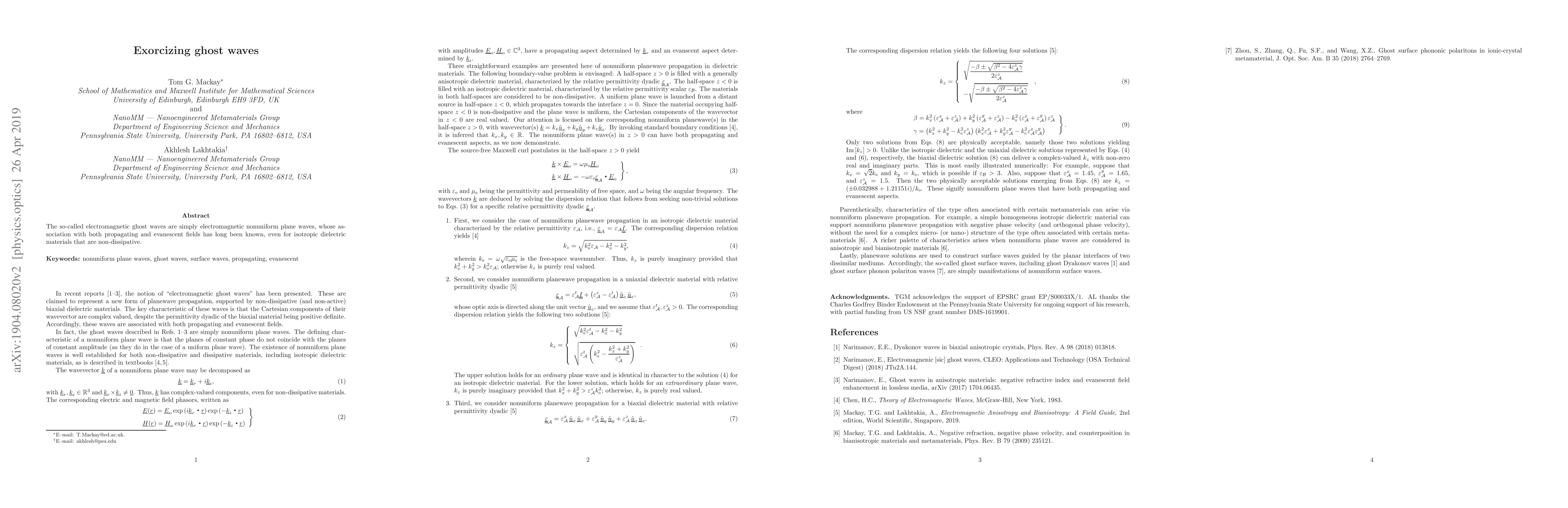 The so-called electromagnetic ghost waves are simply electromagnetic nonuniform plane waves, whose association with both propagating and evanescent fields has long been known, even for isotropic dielectric materials that are non-dissipative.
