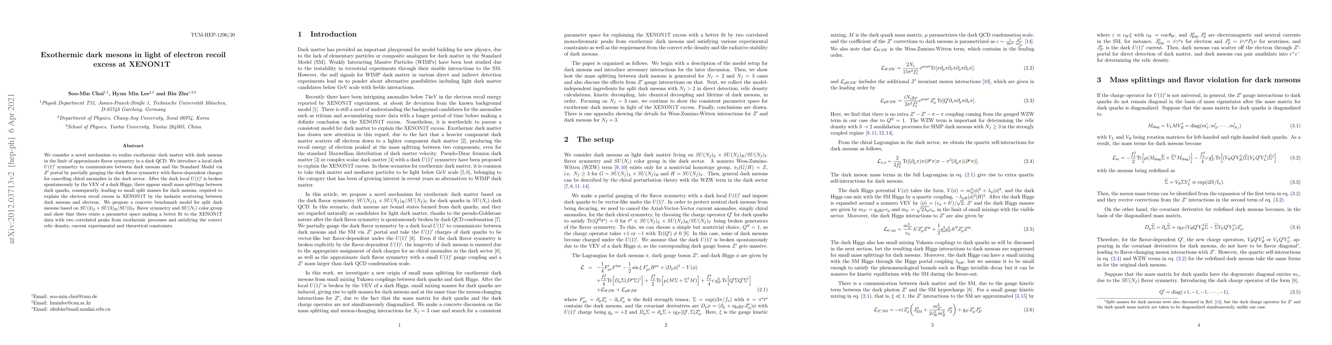 We consider a novel mechanism to realize exothermic dark matter with dark mesons in the limit of approximate flavor symmetry in a dark QCD. We introduce a local dark $U(1)'$ symmetry to communicate between dark mesons and the Standard Model via $Z'$ portal by partially gauging the dark flavor symmetry with flavor-dependent charges for cancelling chiral anomalies in the dark sector. After the dark local $U(1)'$ is broken spontaneously by the VEV of a dark Higgs, there appear small mass splittings between dark quarks, consequently, leading to small split masses for dark mesons, required to explain the electron recoil excess in XENON1T by the inelastic scattering between dark mesons and electron. We propose a concrete benchmark model for split dark mesons based on $SU(3)_L\times SU(3)_R/ SU(3)_V$ flavor symmetry and $SU(N_c)$ color group and show that there exists a parameter space making a better fit to the XENON1T data with two correlated peaks from exothermic processes and satisfying the correct relic density, current experimental and theoretical constraints.