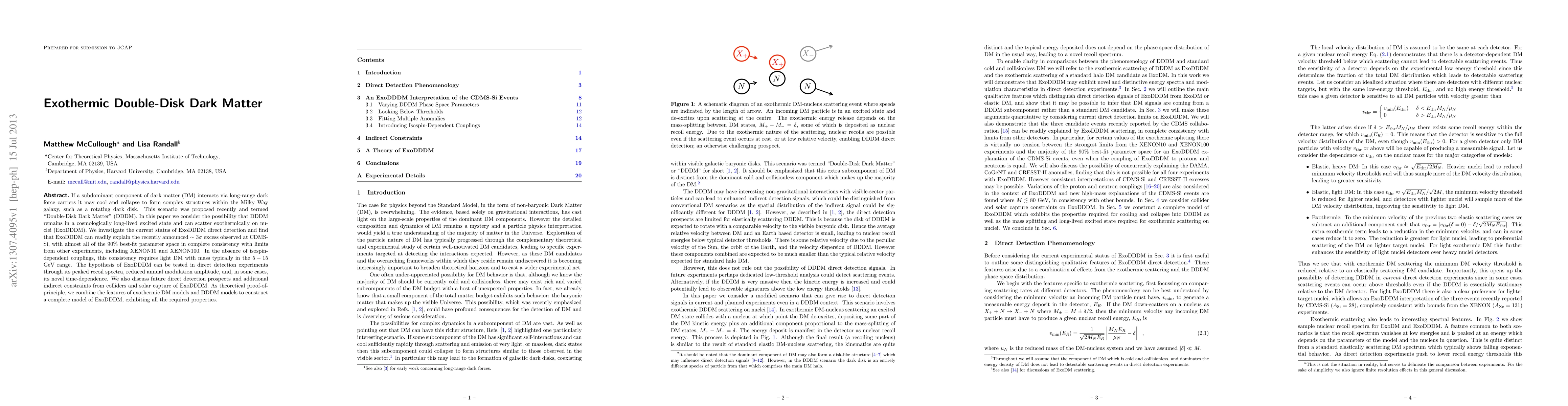 This paper explores the "Exothermic Double-Disk Dark Matter" (ExoDDDM) hypothesis, where a subdominant dark matter component forms complex structures and scatters exothermically on nuclei. It finds that ExoDDDM can explain recent CDMS-Si excess observations while remaining consistent with other experiments, suggesting a DM mass range of 5-15 GeV. Future detection prospects and indirect constraints are discussed.