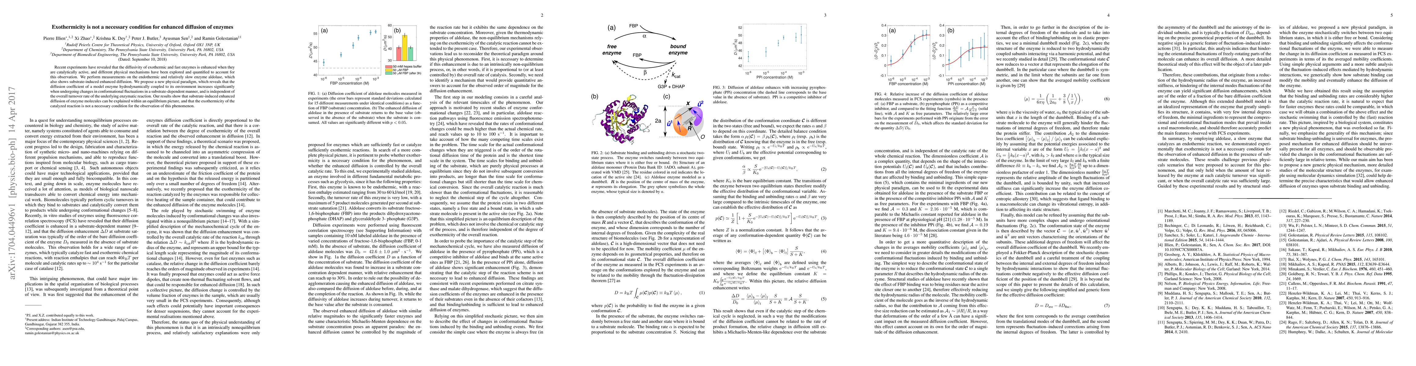Recent experiments have revealed that the diffusivity of exothermic and fast enzymes is enhanced when they are catalytically active, and different physical mechanisms have been explored and quantified to account for this observation. We perform measurements on the endothermic and relatively slow enzyme aldolase, which also shows substrate-induced enhanced diffusion. We propose a new physical paradigm, which reveals that the diffusion coefficient of a model enzyme hydrodynamically coupled to its environment increases significantly when undergoing changes in conformational fluctuations in a substrate-dependent manner, and is independent of the overall turnover rate of the underlying enzymatic reaction. Our results show that substrate-induced enhanced diffusion of enzyme molecules can be explained within an equilibrium picture, and that the exothermicity of the catalyzed reaction is not a necessary condition for the observation of this phenomenon.