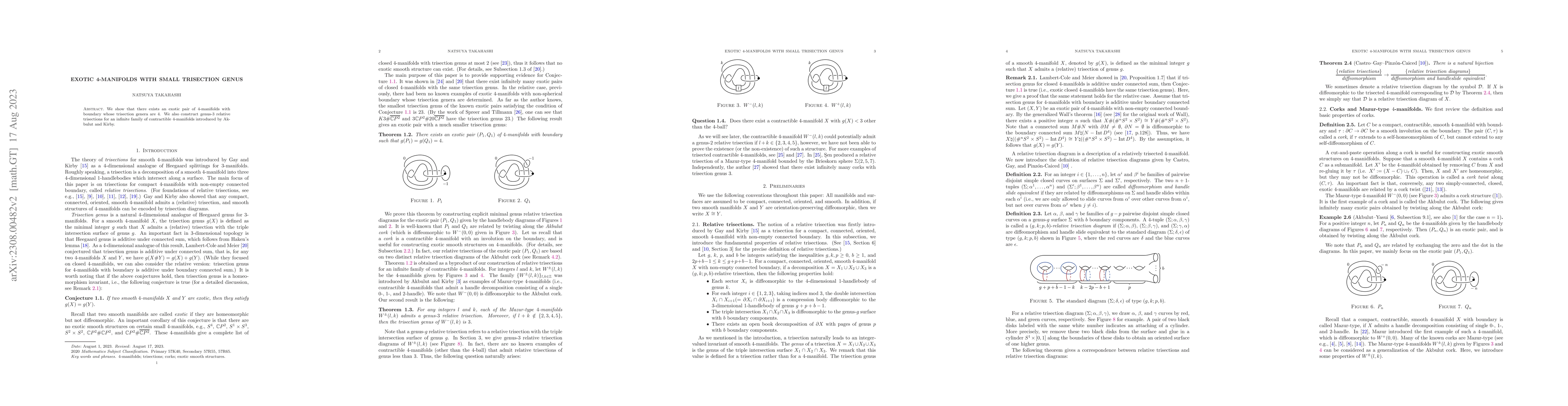 The paper uses relative trisection diagrams to construct exotic 4-manifolds with small trisection genus, employing an algorithm introduced by Kim and Miller to produce handlebody diagrams from relative trisection diagrams.