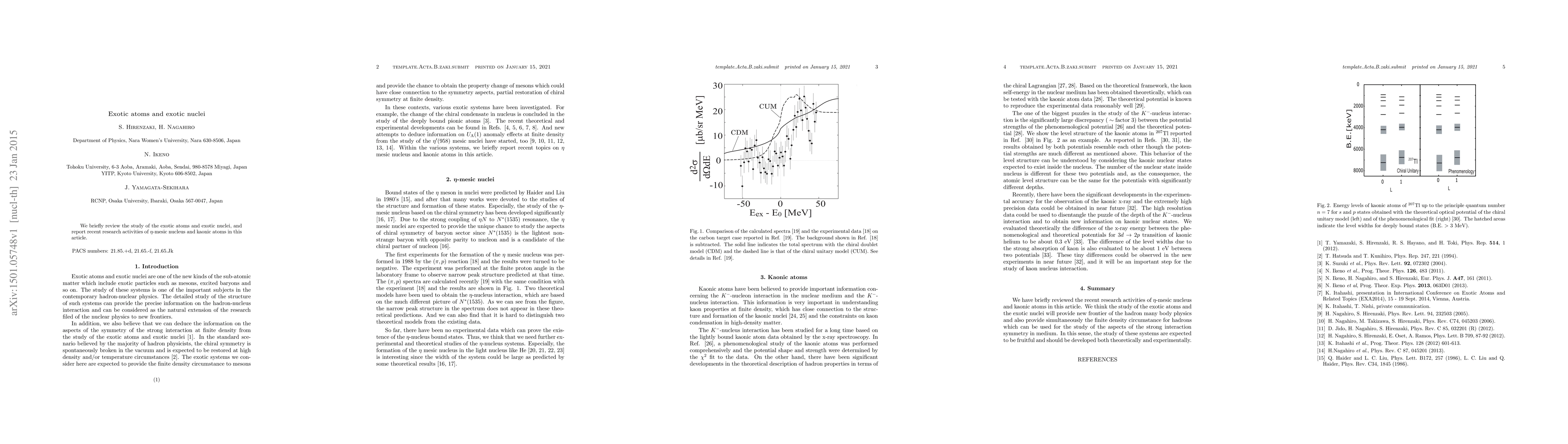 Summary: This paper reviews the investigation into exotic atoms and nuclei, focusing on recent developments in eta-mesic nuclei and kaonic atoms, highlighting their unique properties and research significance.