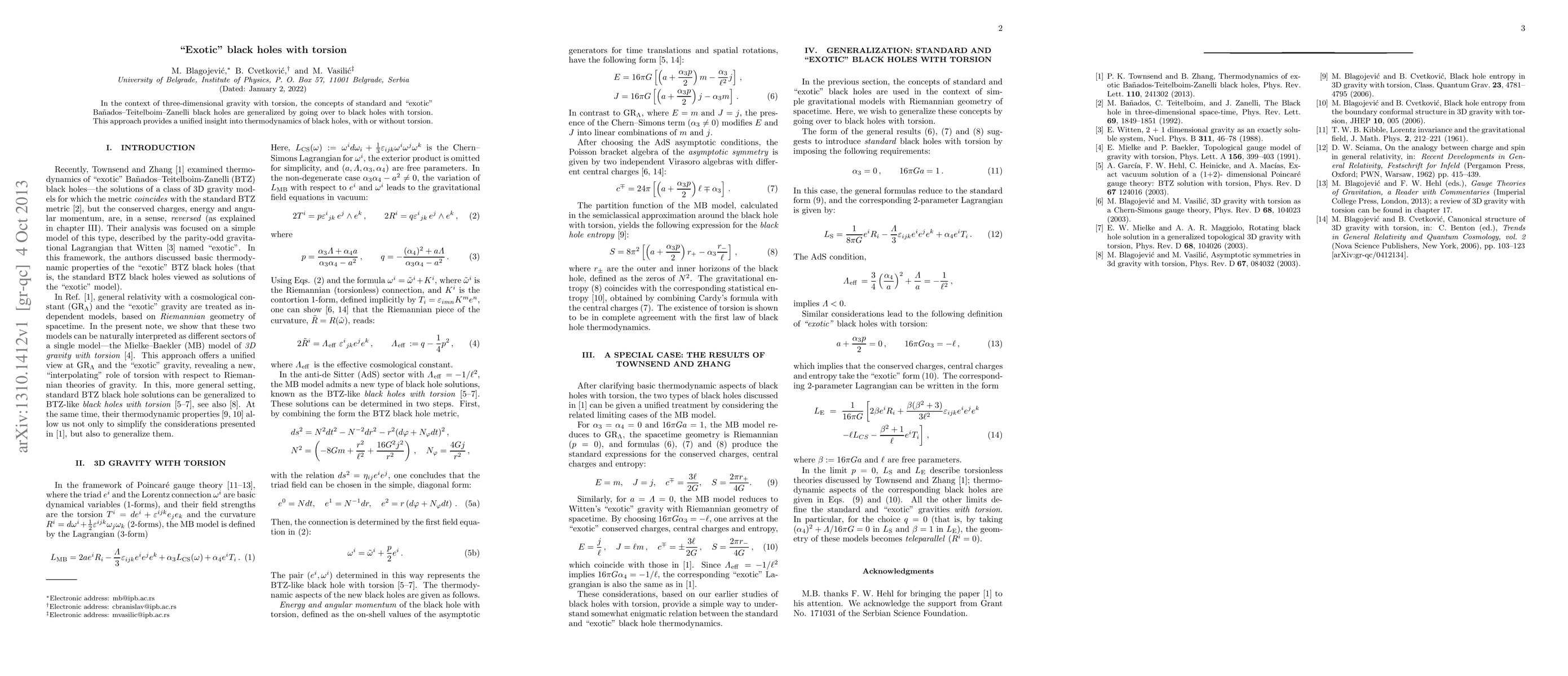 This paper generalizes the concepts of standard and "exotic" Banados-Teitelboim-Zanelli black holes in three-dimensional gravity to include torsion, offering a unified thermodynamic perspective on black holes with and without torsion.