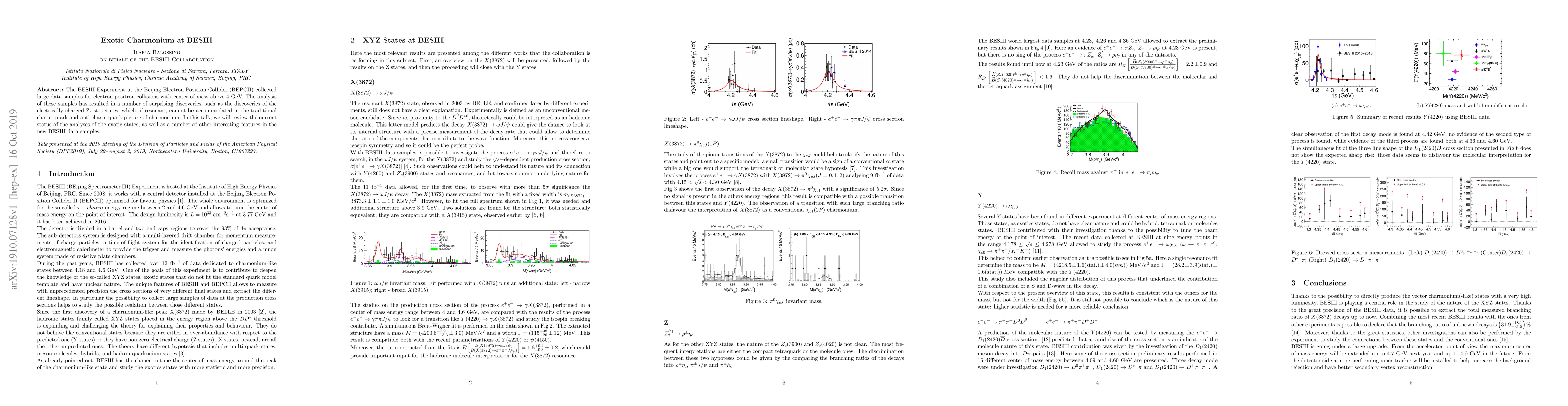 The BESIII Experiment at the Beijing Electron Positron Collider (BEPCII) collected large data samples for electron-positron collisions with center-of-mass above 4 GeV. The analysis of these samples has resulted in a number of surprising discoveries, such as the discoveries of the electrically charged $\mathrm{Z_c}$ structures, which, if resonant, cannot be accommodated in the traditional charm quark and anti-charm quark picture of charmonium. In this talk, we will review the current status of the analyses of the exotic states, as well as a number of other interesting features in the new BESIII data samples.